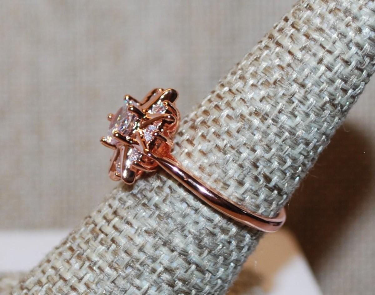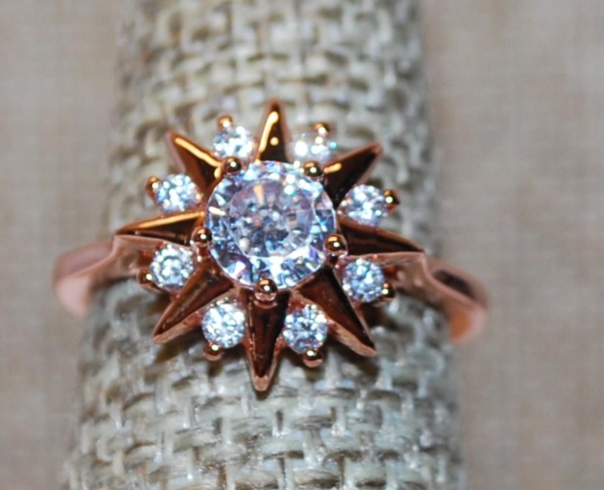 Size 7 Marked .925 Rose Gold "Starburst" Style Ring on a Siler Filled Band (3.5g)