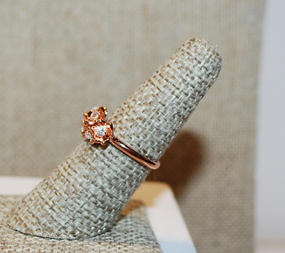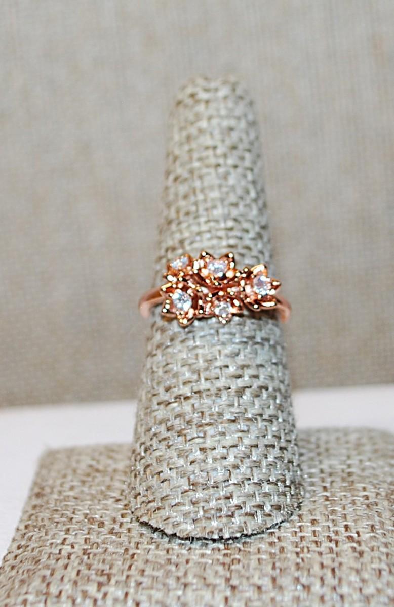 Size 7 Marked .925 ROSE GOLD Petals Bouquet Ring and 5 Clear Stones on a Silver Filled Rose Gold Band (2.7g)