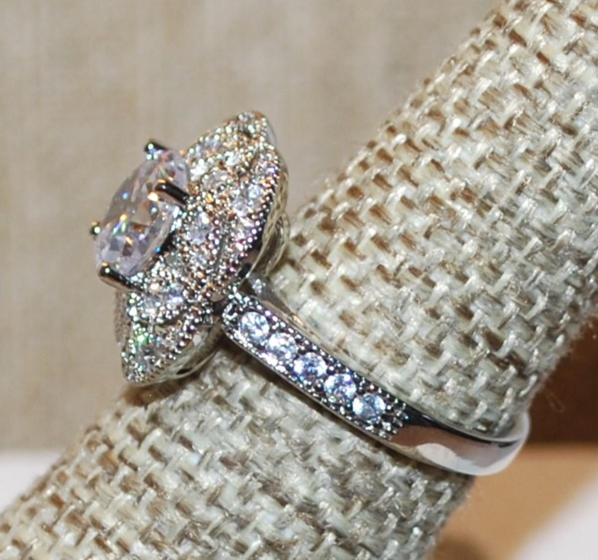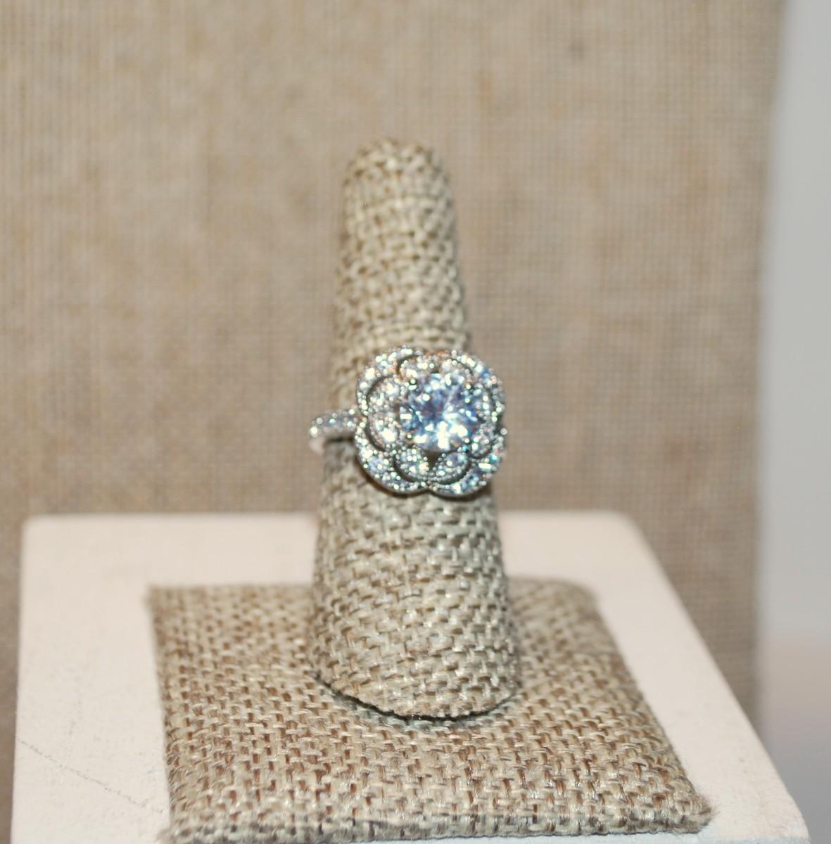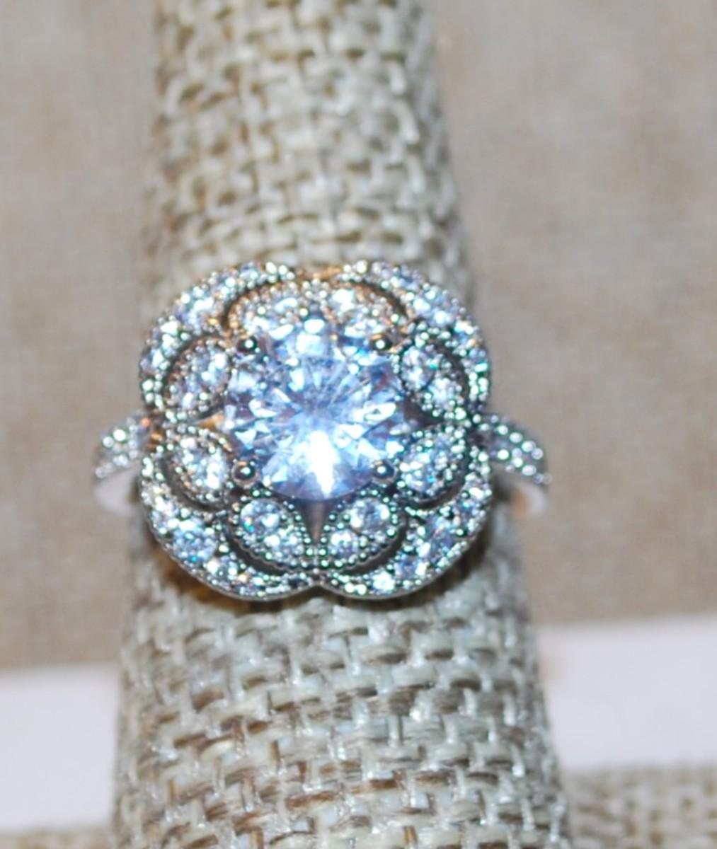 Size 7¼ Marked .925 Rounded 4 Leaf Clove Style Glitter Ring with Main Stone & Circle Surrounds on a Silver Band (5.1g)