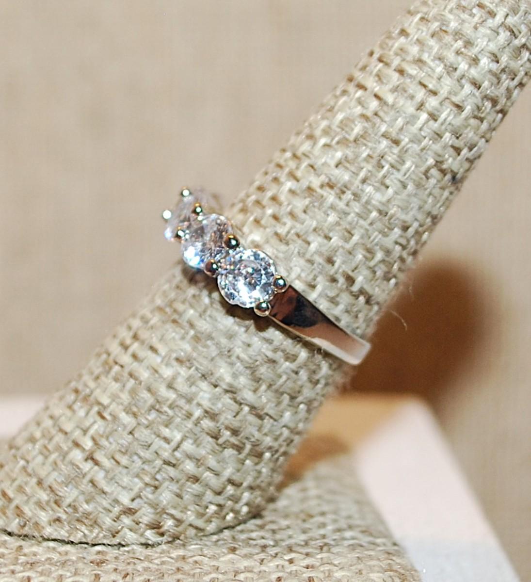 Size 7 Marked .925 Set of 6 Clear Round Stones on a Silver Band (3.7g)