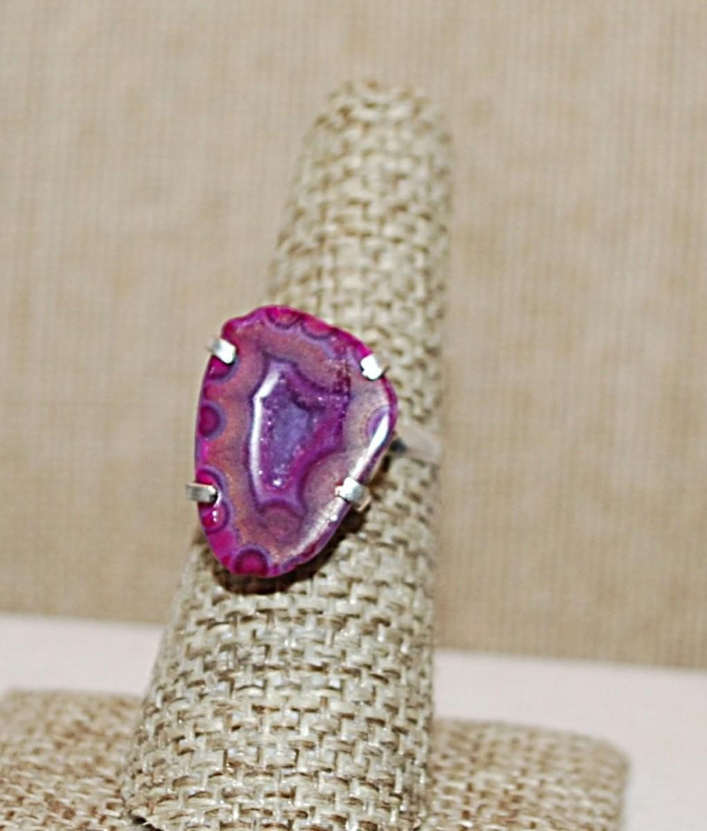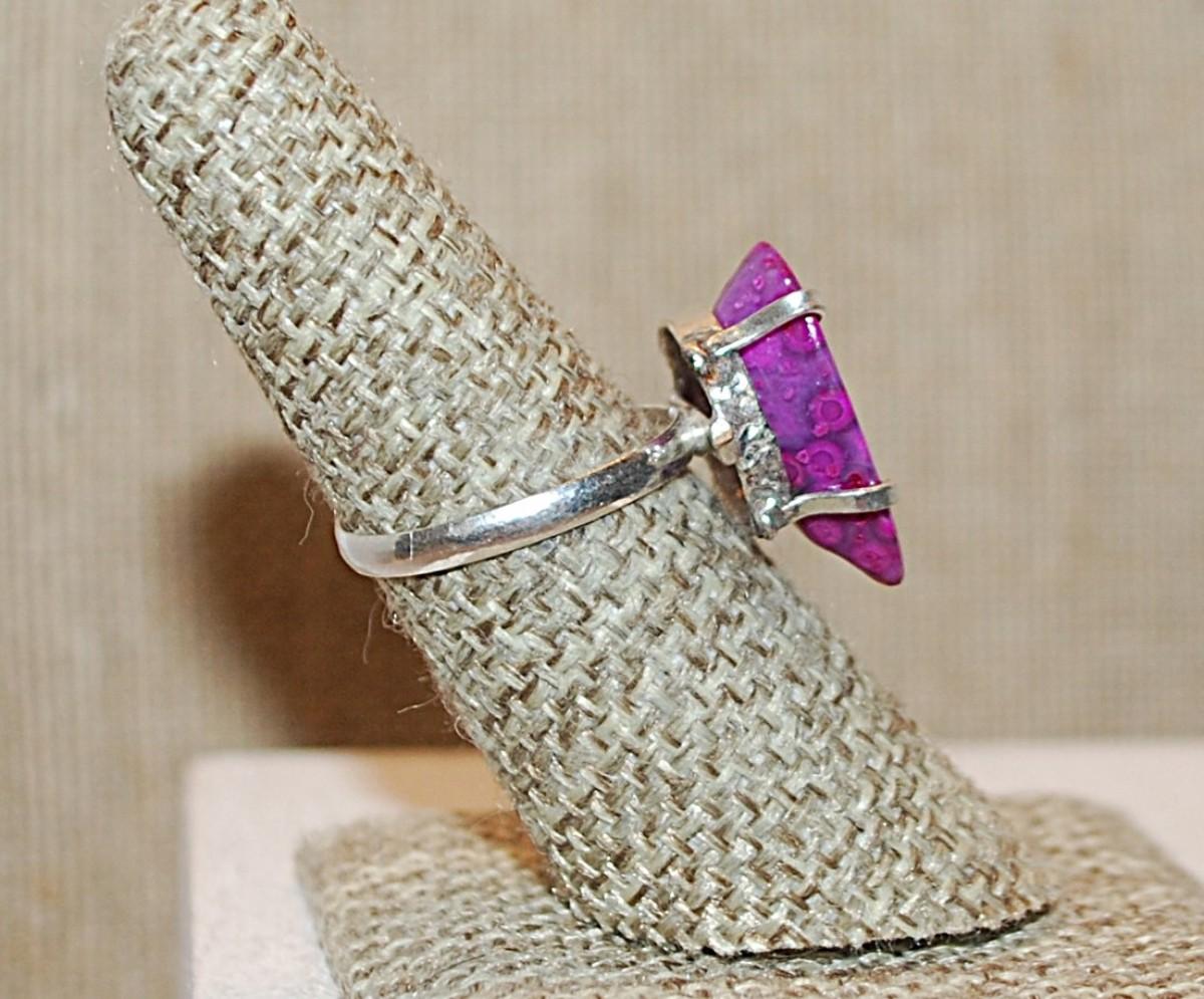 Size 7 Marked .925 VIOLET 4 Prong SOLAR QUARTZ DRUZY Gemstone Ring on a Silver-Plated Band (3.5g)