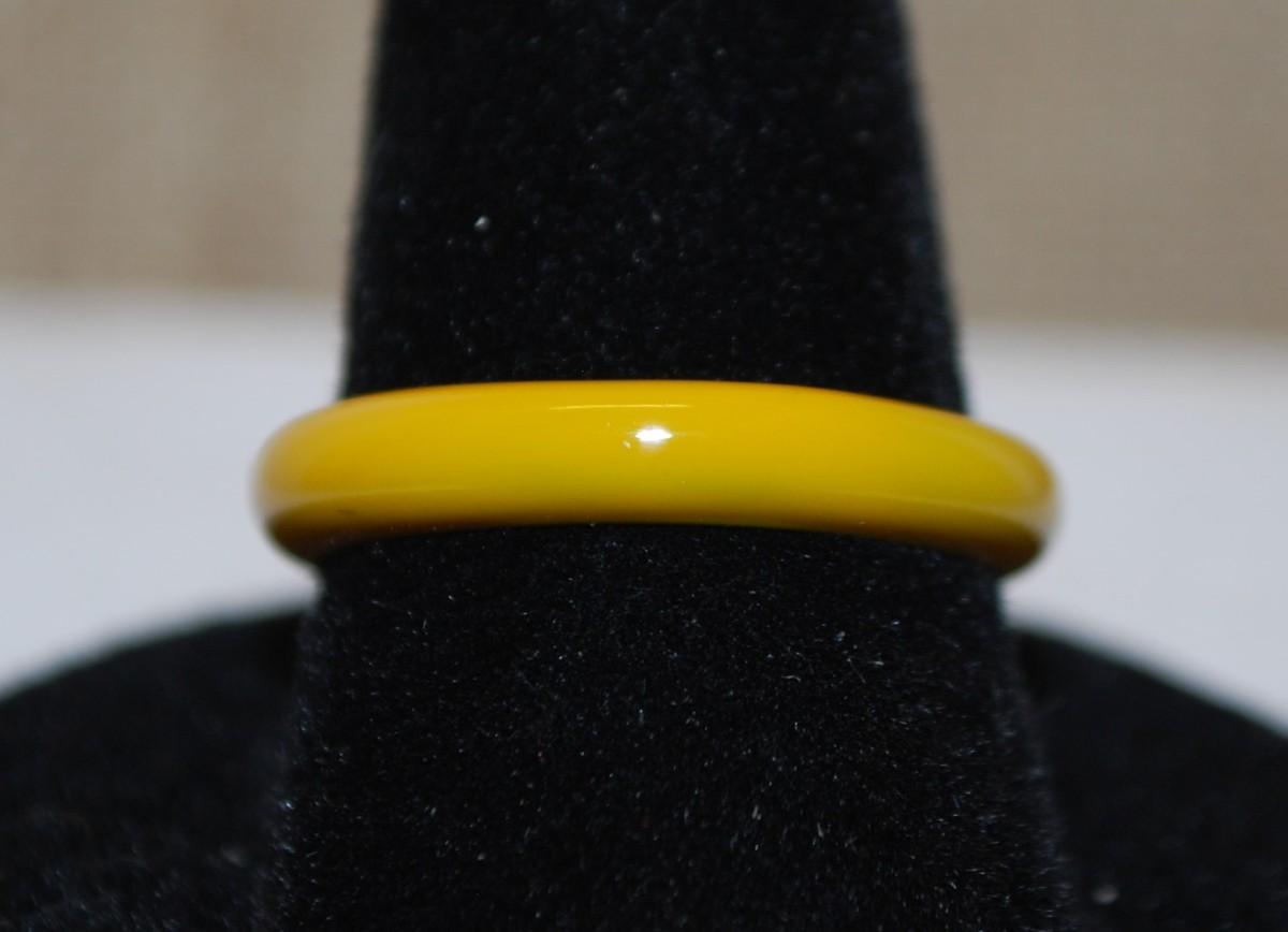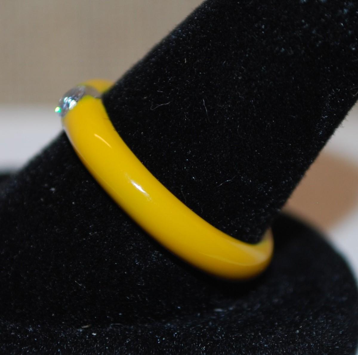 Size 7 Mustard Yellow Enamel Style Ring with Single Round Stone (2.4g)