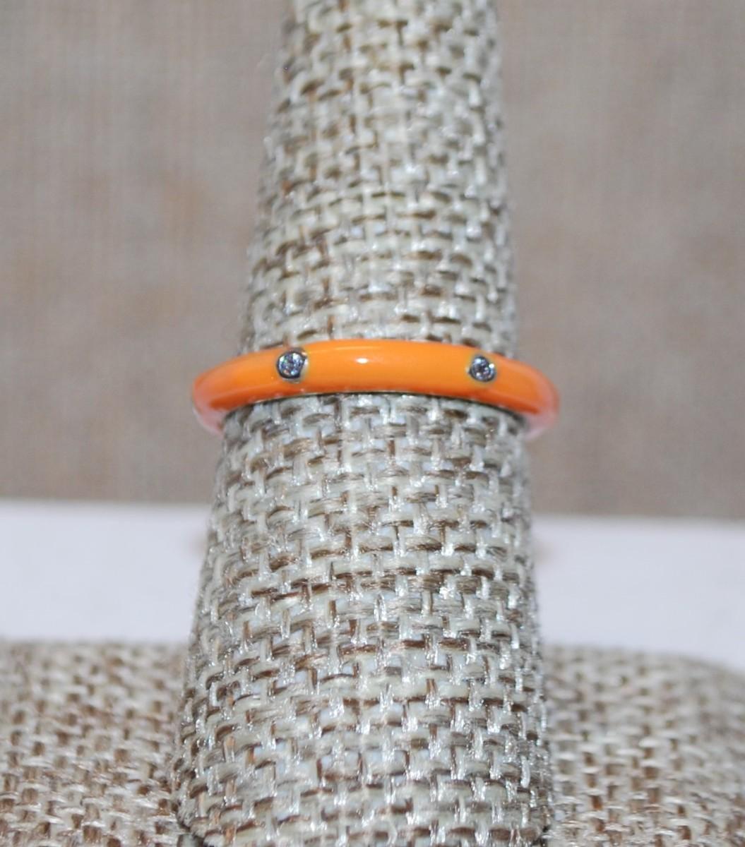 Size 7 ORANGE Enamel Ring with 6 Rhinestones Around the Band (2.3)
