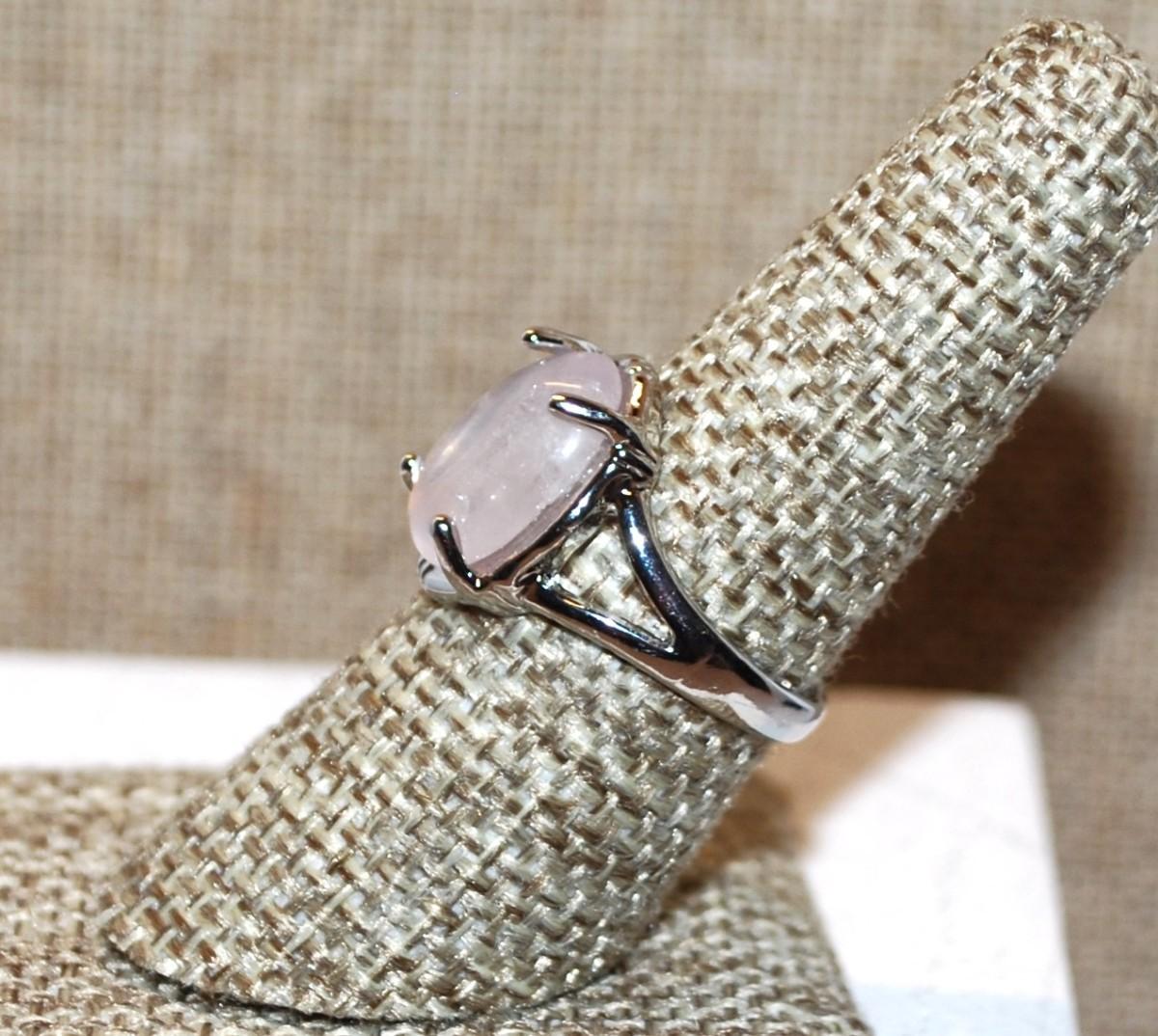 Size 7½ Oval White Quartz Stone Ring with Open Sides on a Silver Tone and (3.5g)