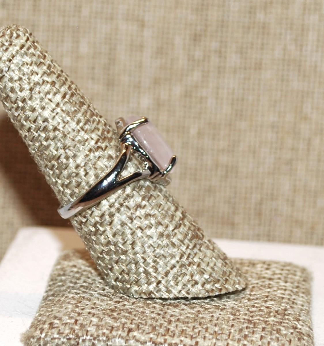 Size 7½ Oval White Quartz Stone Ring with Open Sides on a Silver Tone and (3.5g)