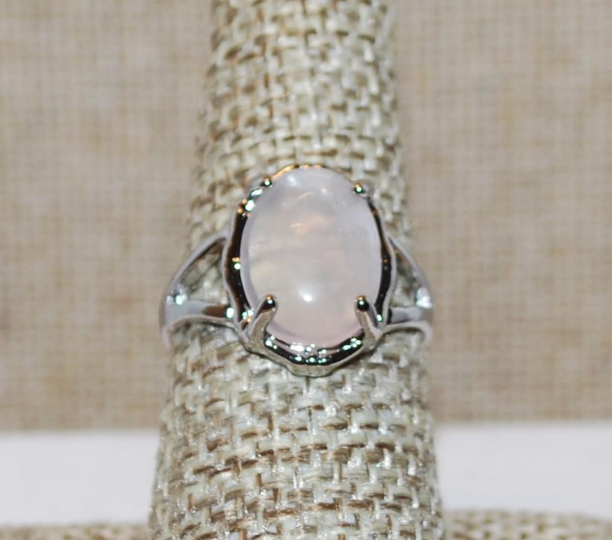 Size 7½ Oval White Quartz Stone Ring with Open Sides on a Silver Tone and (3.5g)