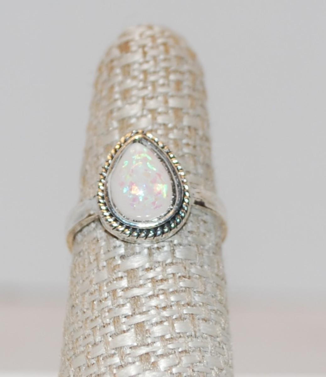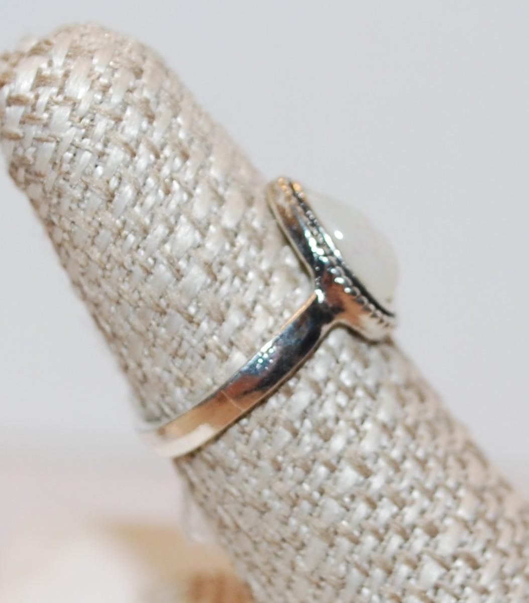 Size 7¼ Pear Shaped Iridescent Moonstone Ring with Rope Surrounds (2.9g)