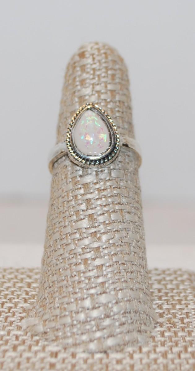 Size 7¼ Pear Shaped Iridescent Moonstone Ring with Rope Surrounds (2.9g)