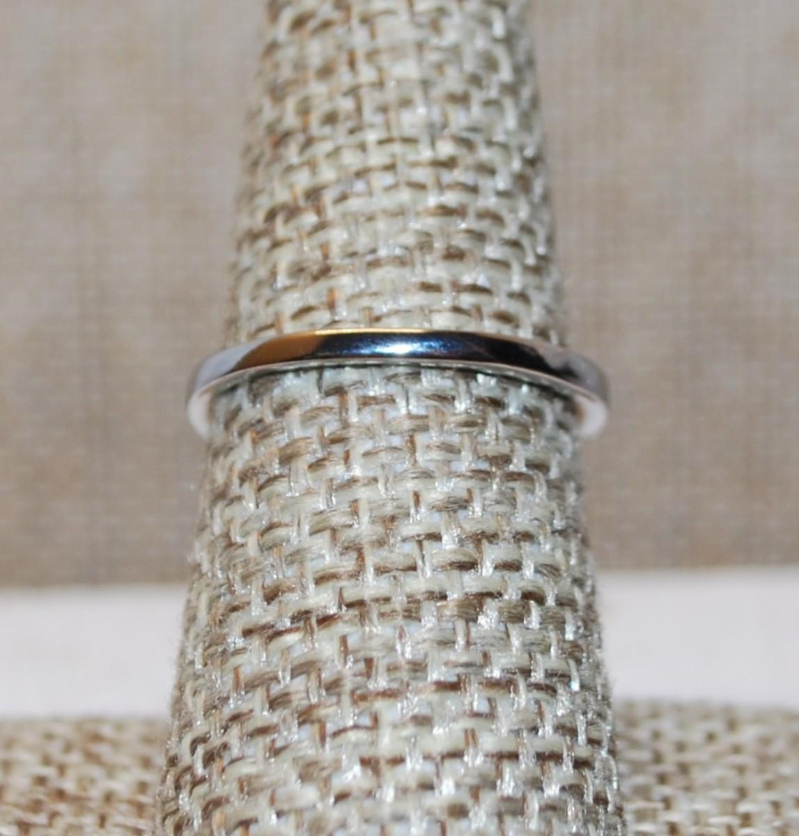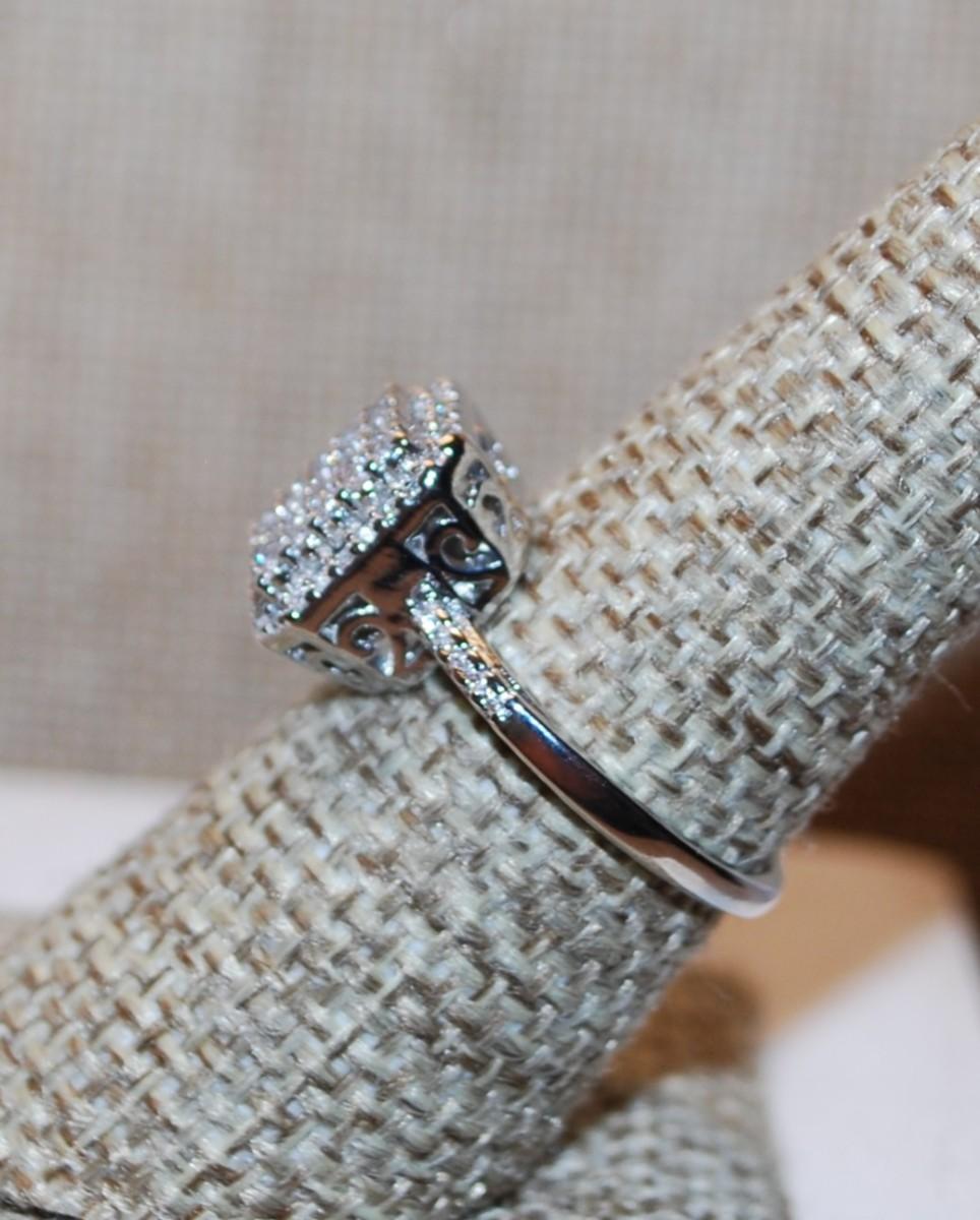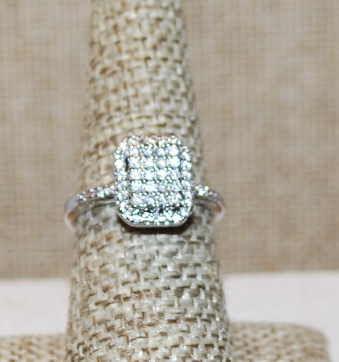 Size 7¼ Rectangle "Pad" of Clear Stones & Full Surrounds Ring on a Silver Tone Band (3.5g)