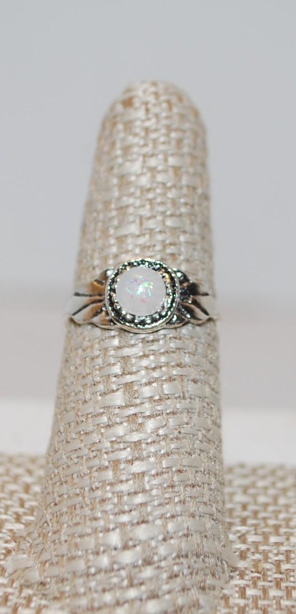 Size 7 ½ Round Iridescent Moonstone with Side "Leaves" Ring (1.6g)