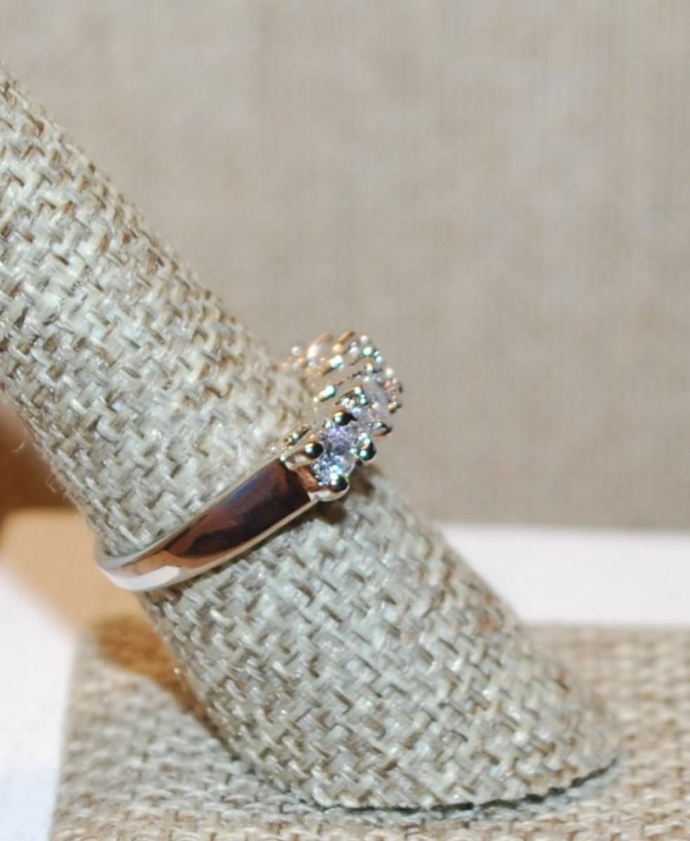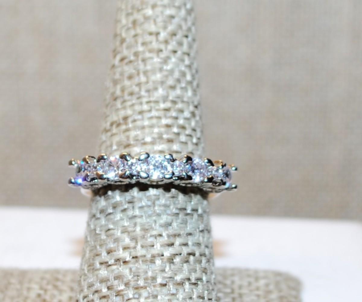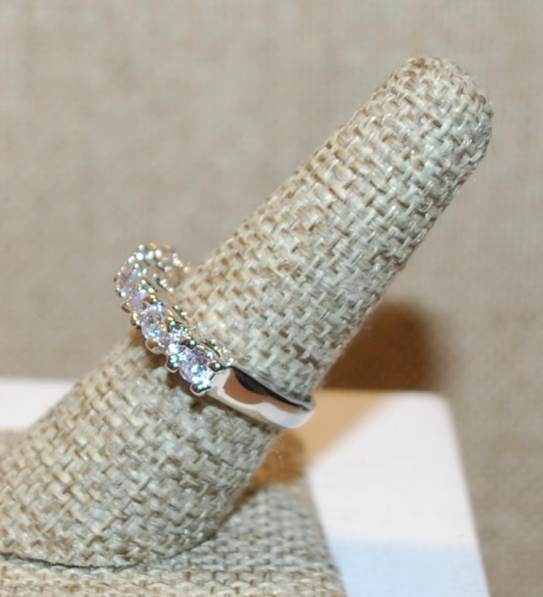Size 7½ Row of 5 Clear Stones Ring on a Silver Tone Band (3.9g)