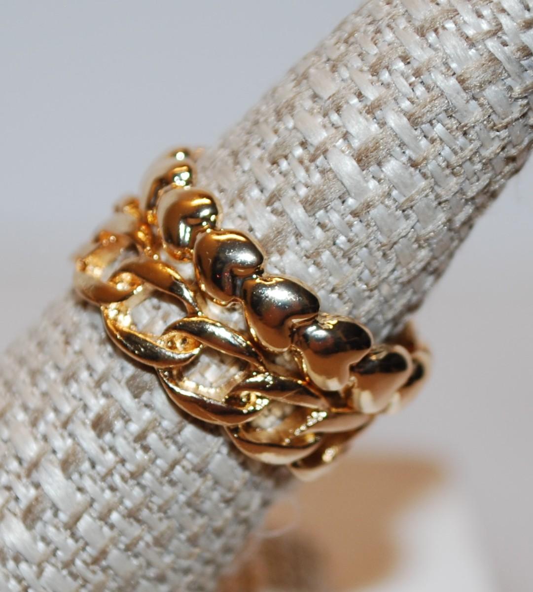 Size 7¾ Set of 2 Stackable/Individual Gold Tone Rings with Hearts & Chain Links (5.7g)