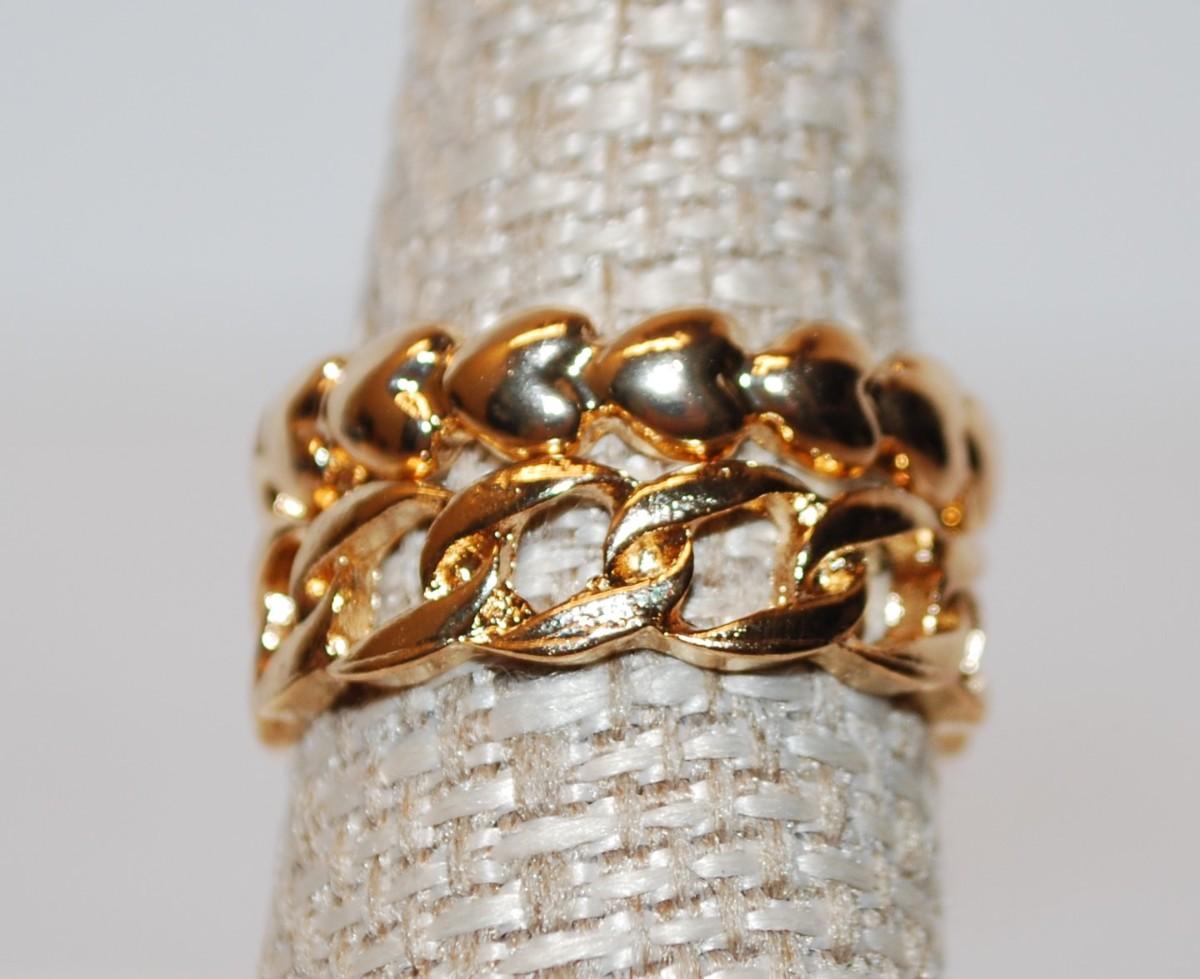 Size 7¾ Set of 2 Stackable/Individual Gold Tone Rings with Hearts & Chain Links (5.7g)