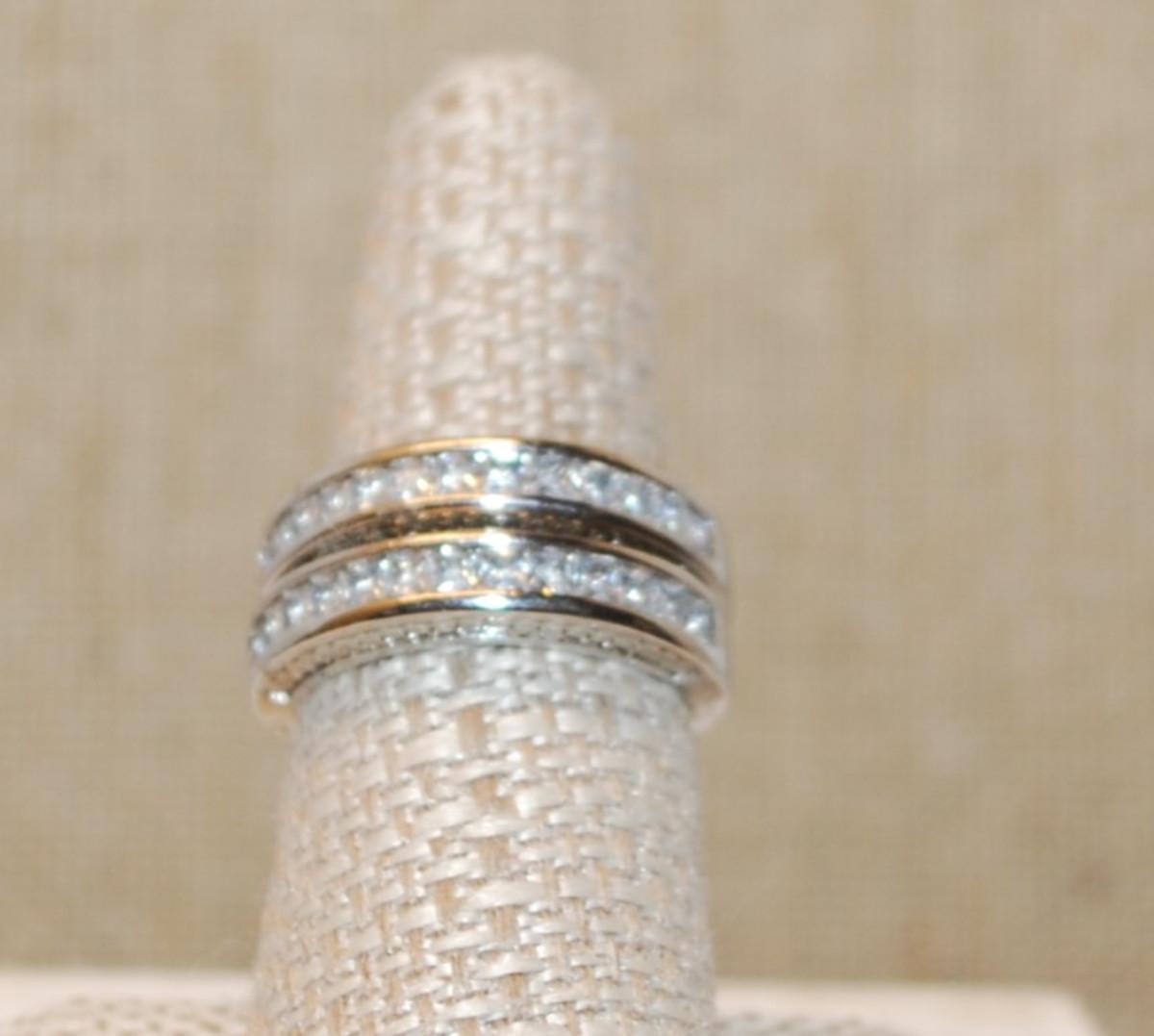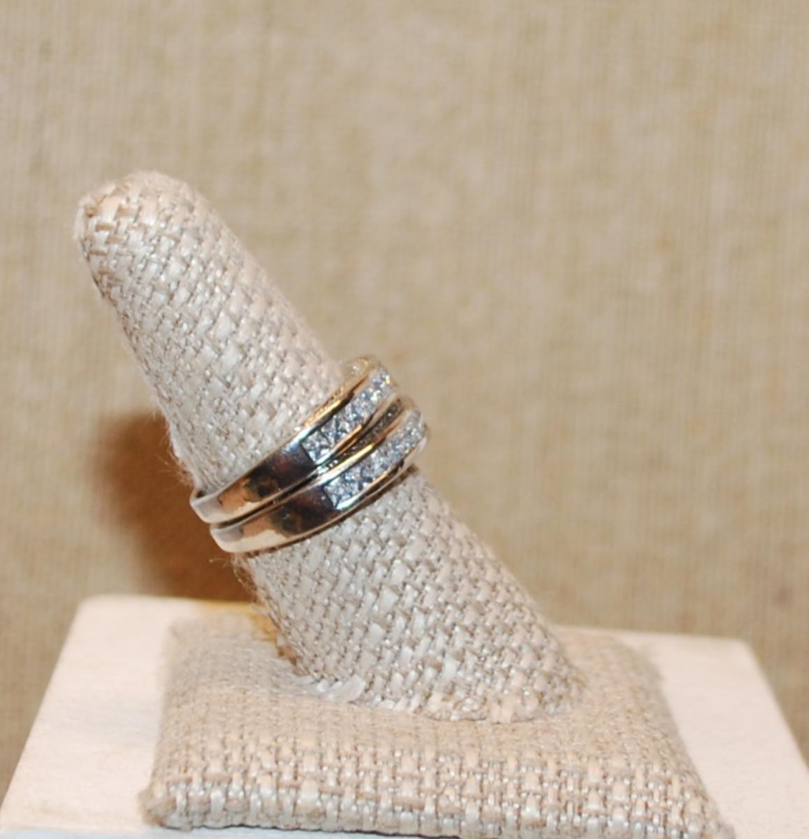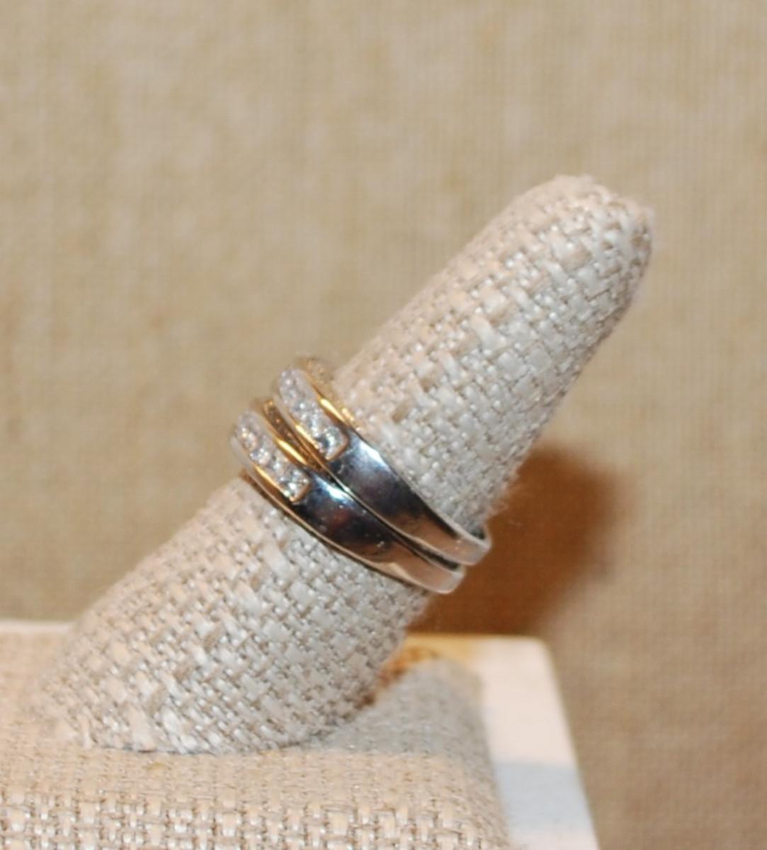 Size 7 Set of 2 Stackable Half Infinity Style Wedding/Engagement Rings on Silver Tone Bands (7.6g)
