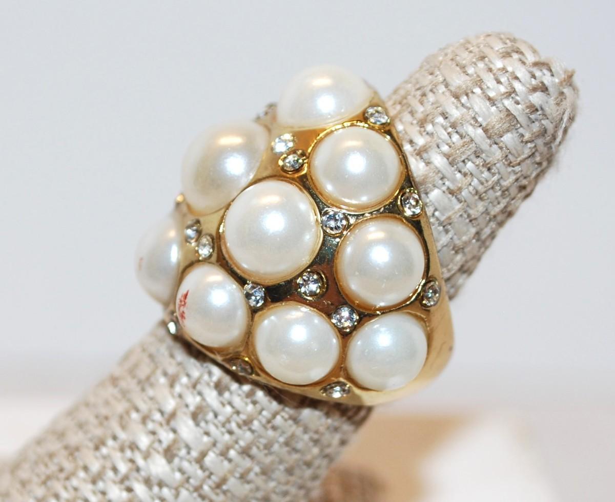 Size 7 Showy Ring with 15 Pearl-Style Stones and Tiny Sparkle Stones Embed (25.0g)