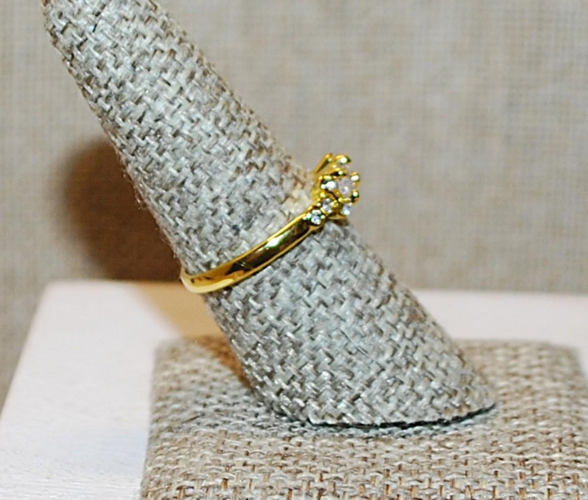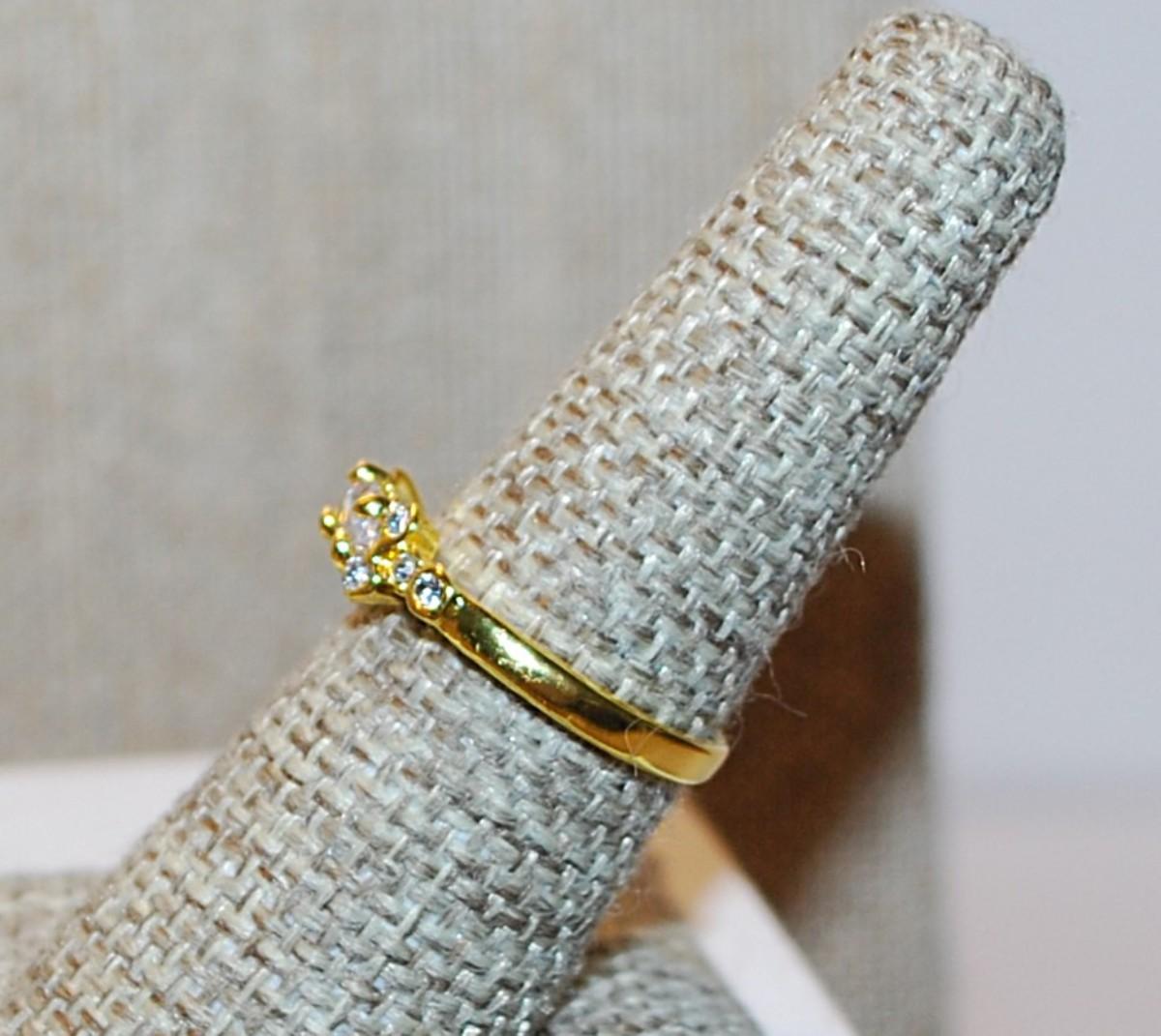 Size 7¾ Side Positioned Marquise Shaped Clear Main Stone Ring with a Gold Tone Band (2.2g)