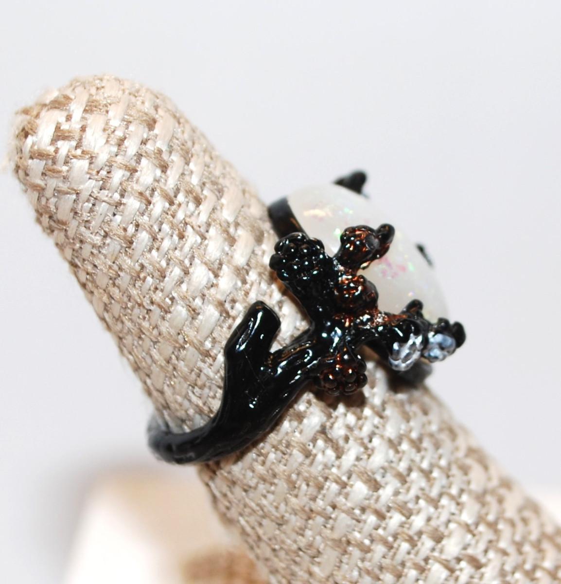 Size 7 ¼ Silver Plated .925 Flowered Black Band with Oval Fire Opal (7.2g)