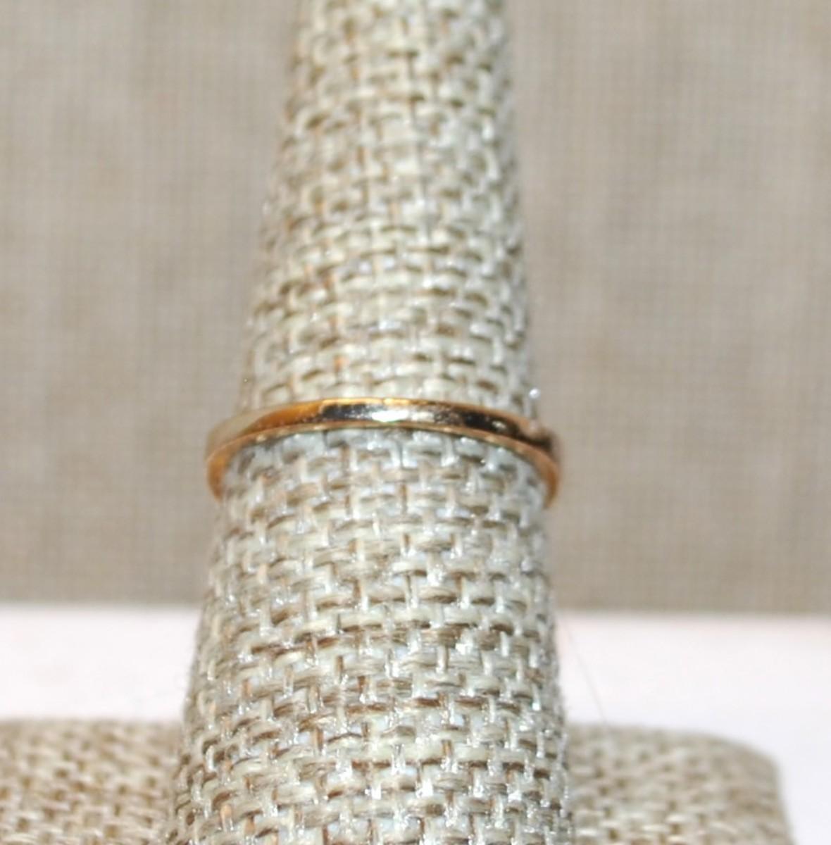 Size 7½ Single Clear Red Round Stone Ring with 2 Rows Side Accent Stones on a Gold Tone Band (2.4g)