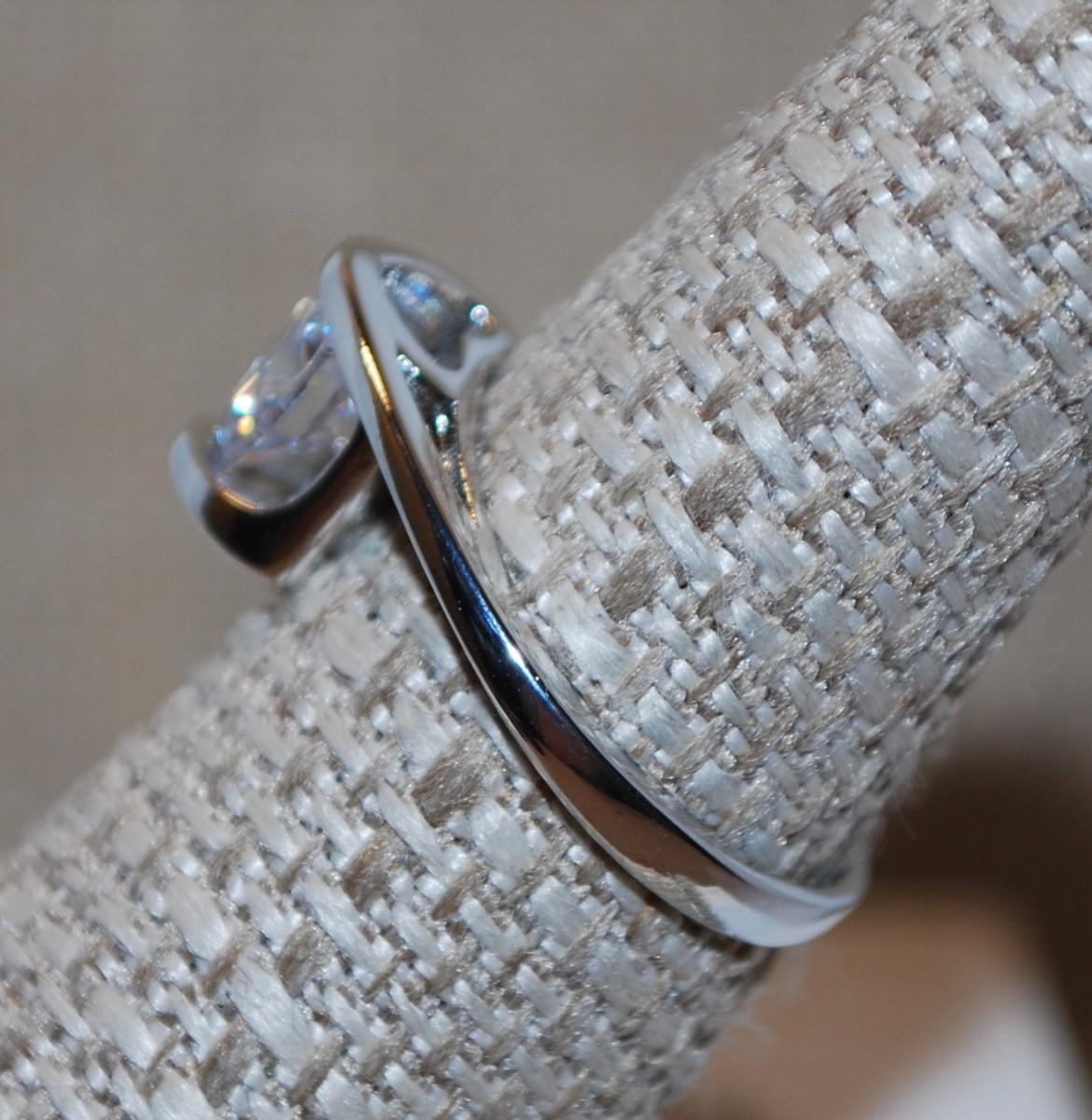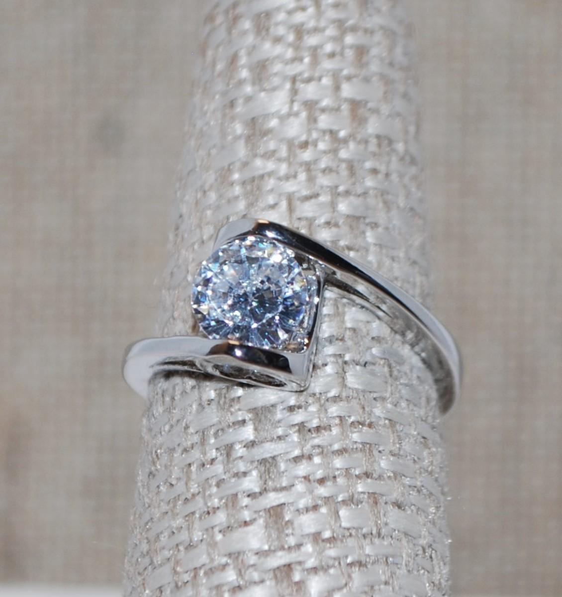 Size 7¼ Single Round Clear Stone Ring on a "Rollercoaster" Style Silver Tone Band (3.1g)