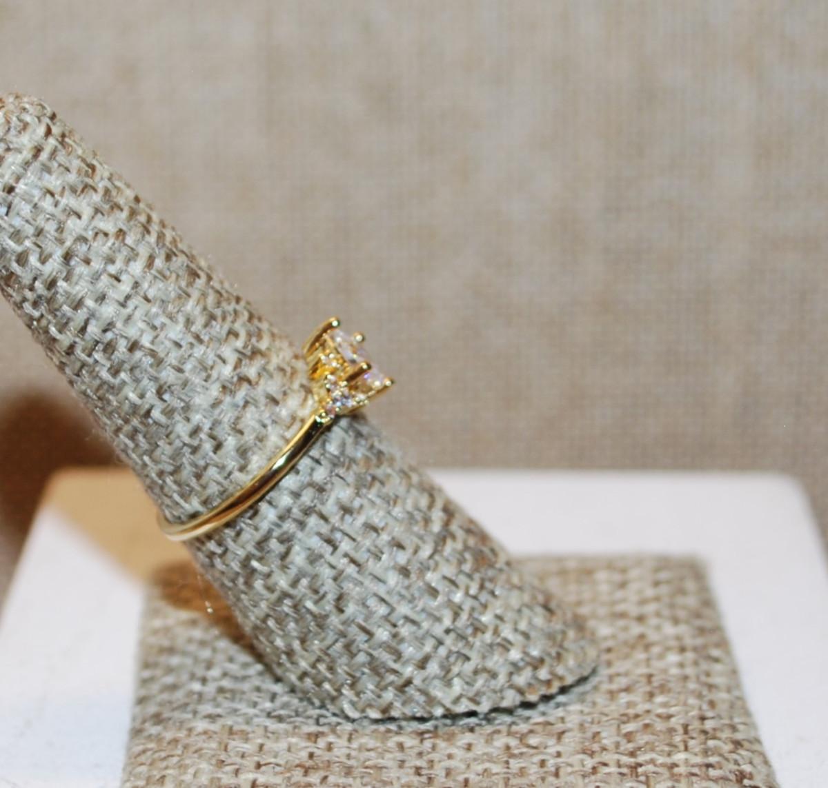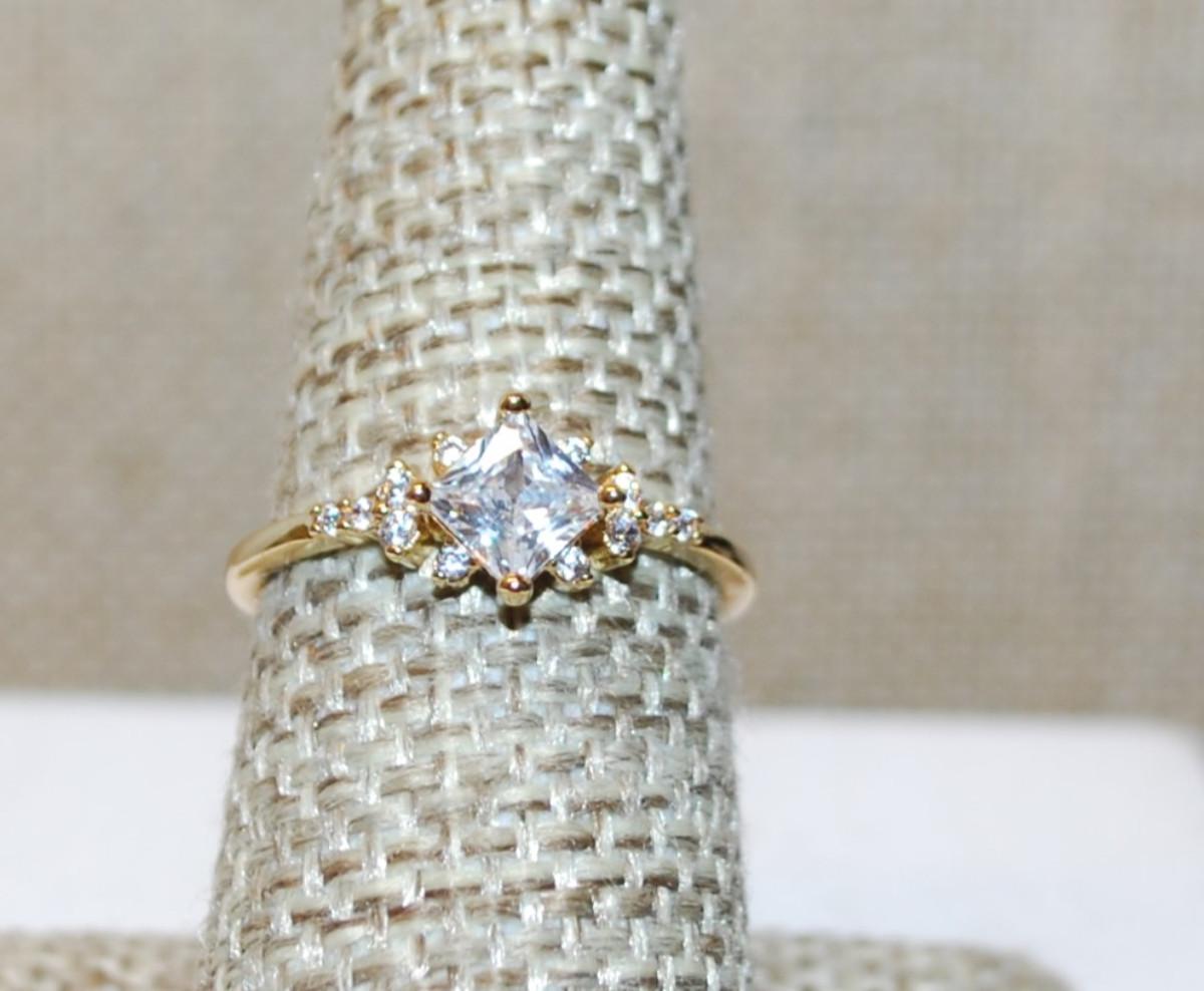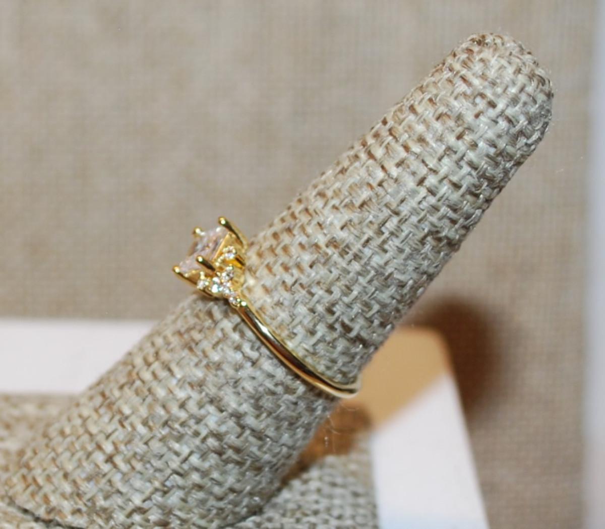 Size 7 Small "Starburst" Style Ring with Accents & Gold Tone Band (1.6g)