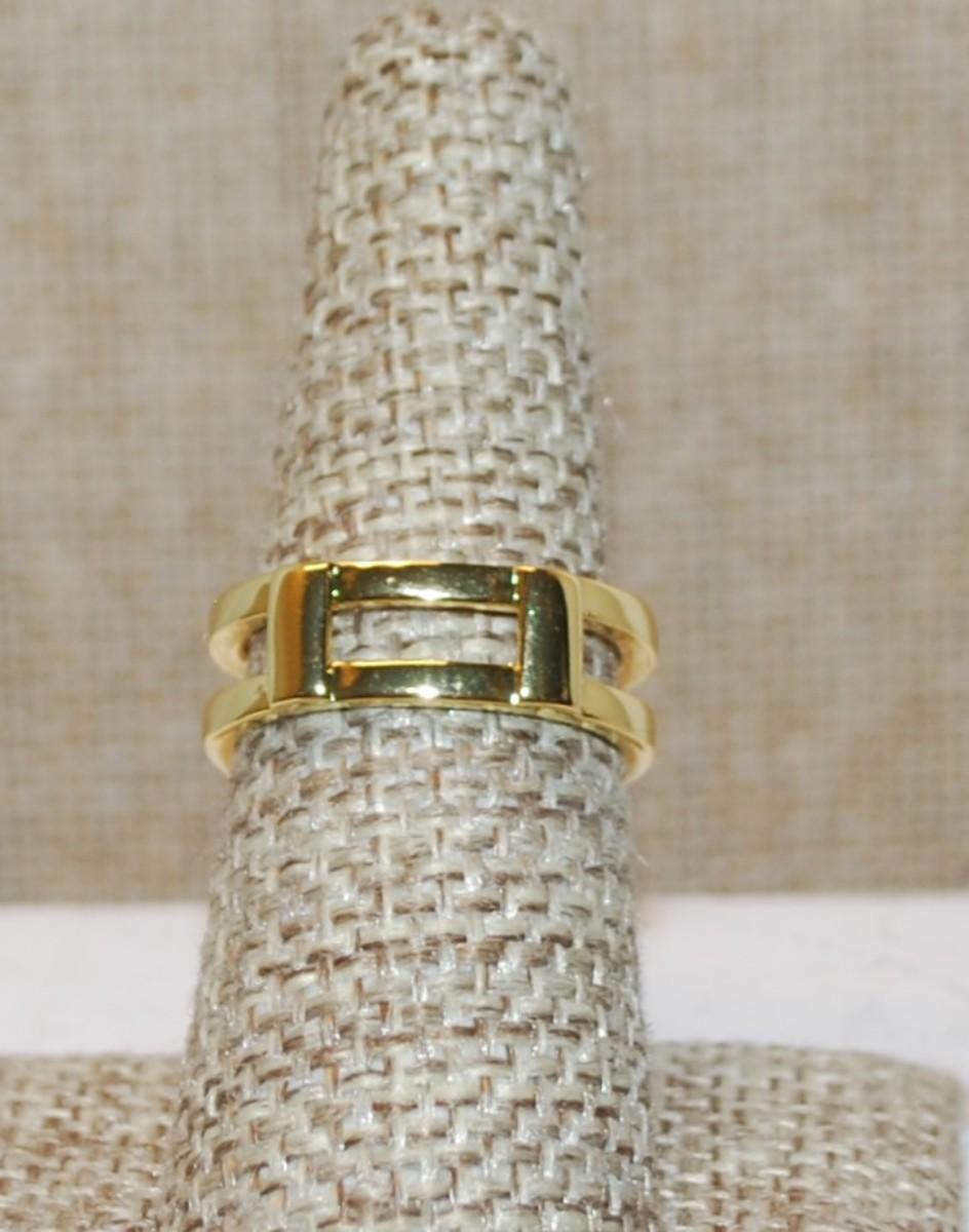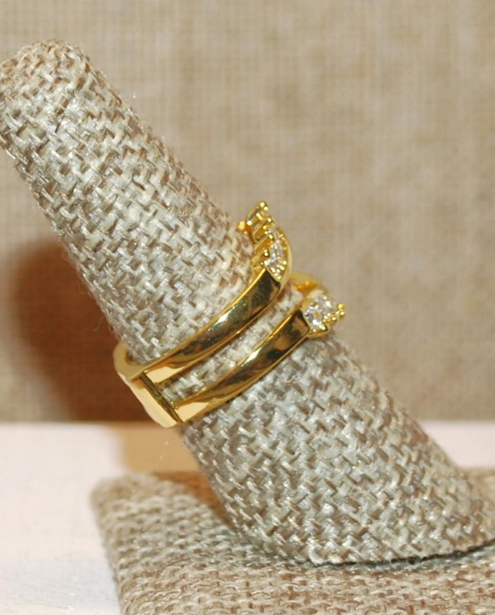 Size 7¾ Split 2 Tier Setting & Clear Stones Ring on a Gold Tone Band (5.1g)