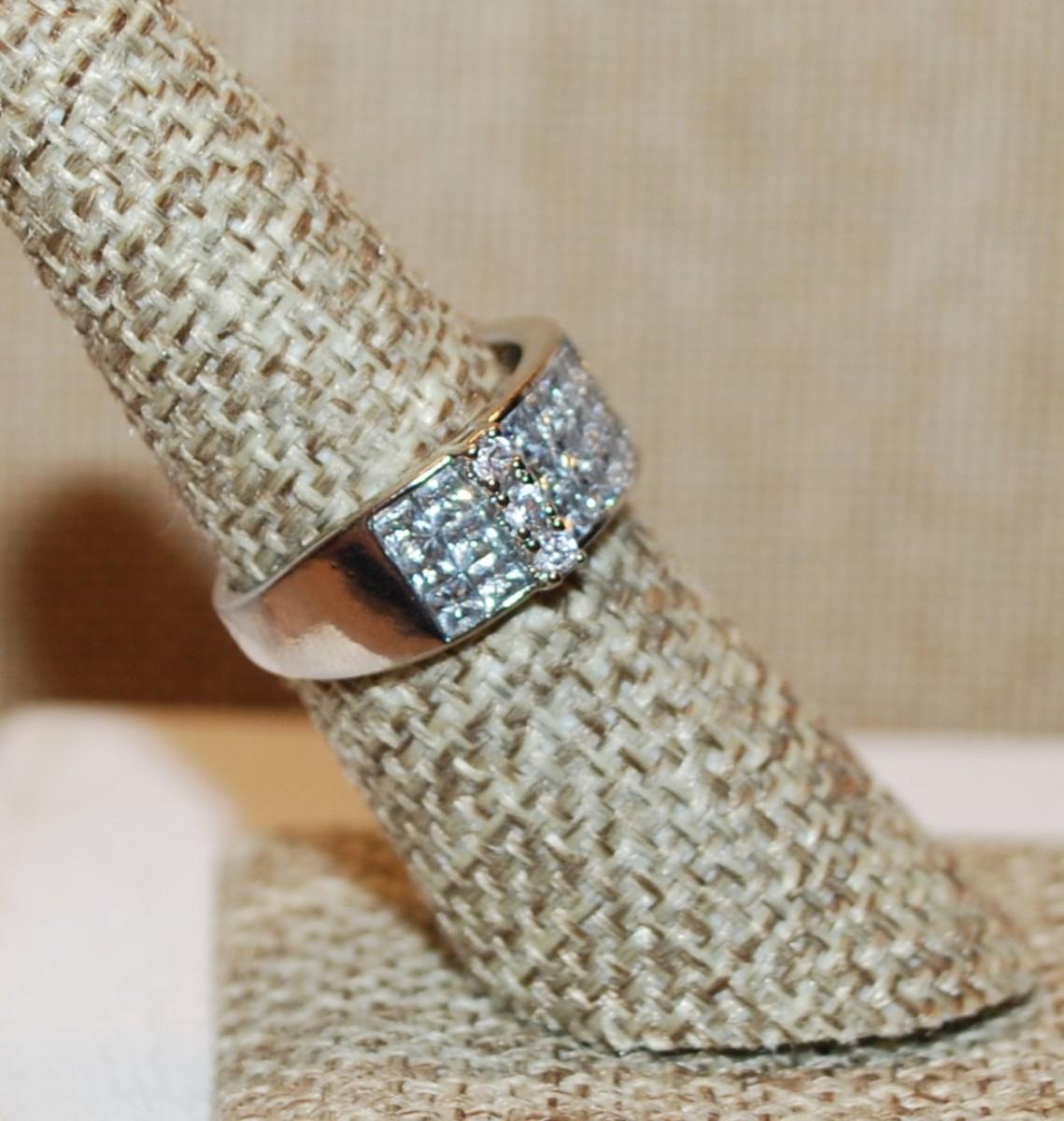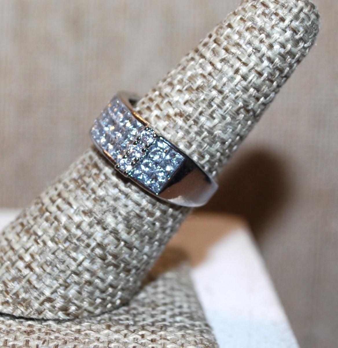 Size 7 Straight Rows Wedding/Engagement Style Ring Marked .925 on a Silver Band (6.0g)
