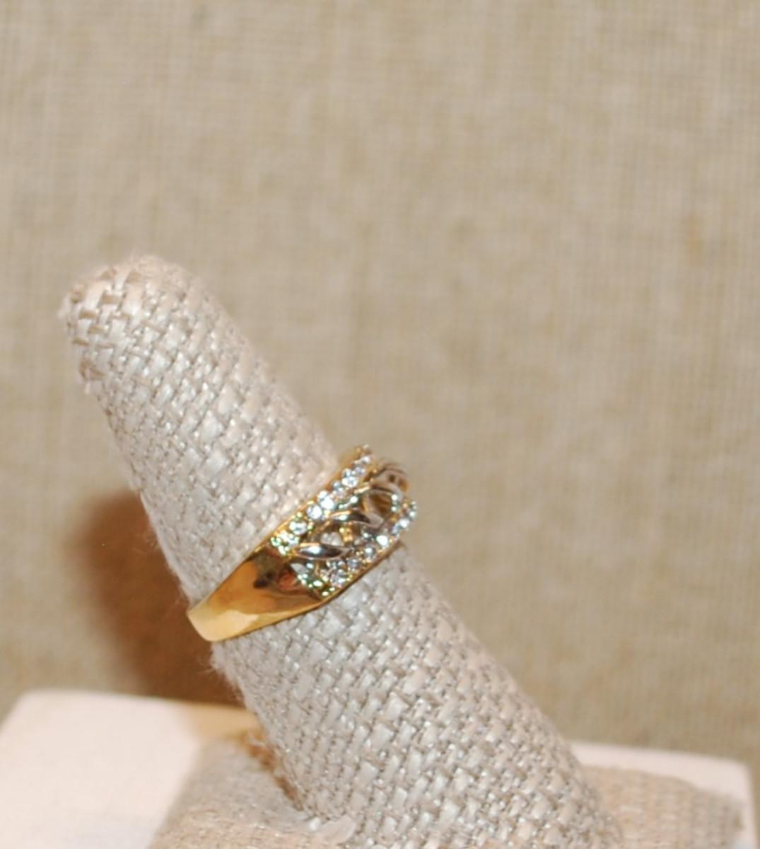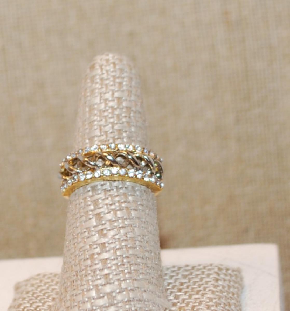 Size 7½ Swirled Chain Link Two-Toned Setting Ring & 2 Lines of Clear Stone Accents on a Gold Tone Band (4.2g)