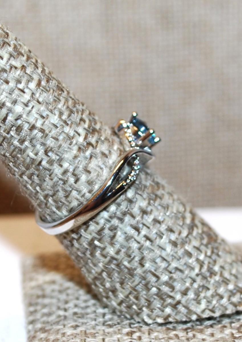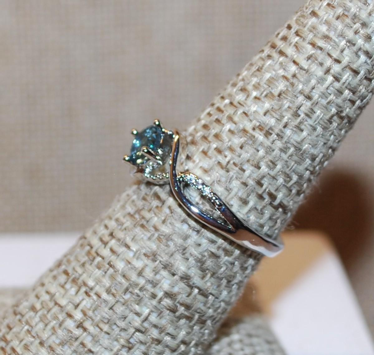 Size 7¼ Transparent Light Blue Round Stone Ring in a Rollercoaster Silver Tone Setting (2.2g)