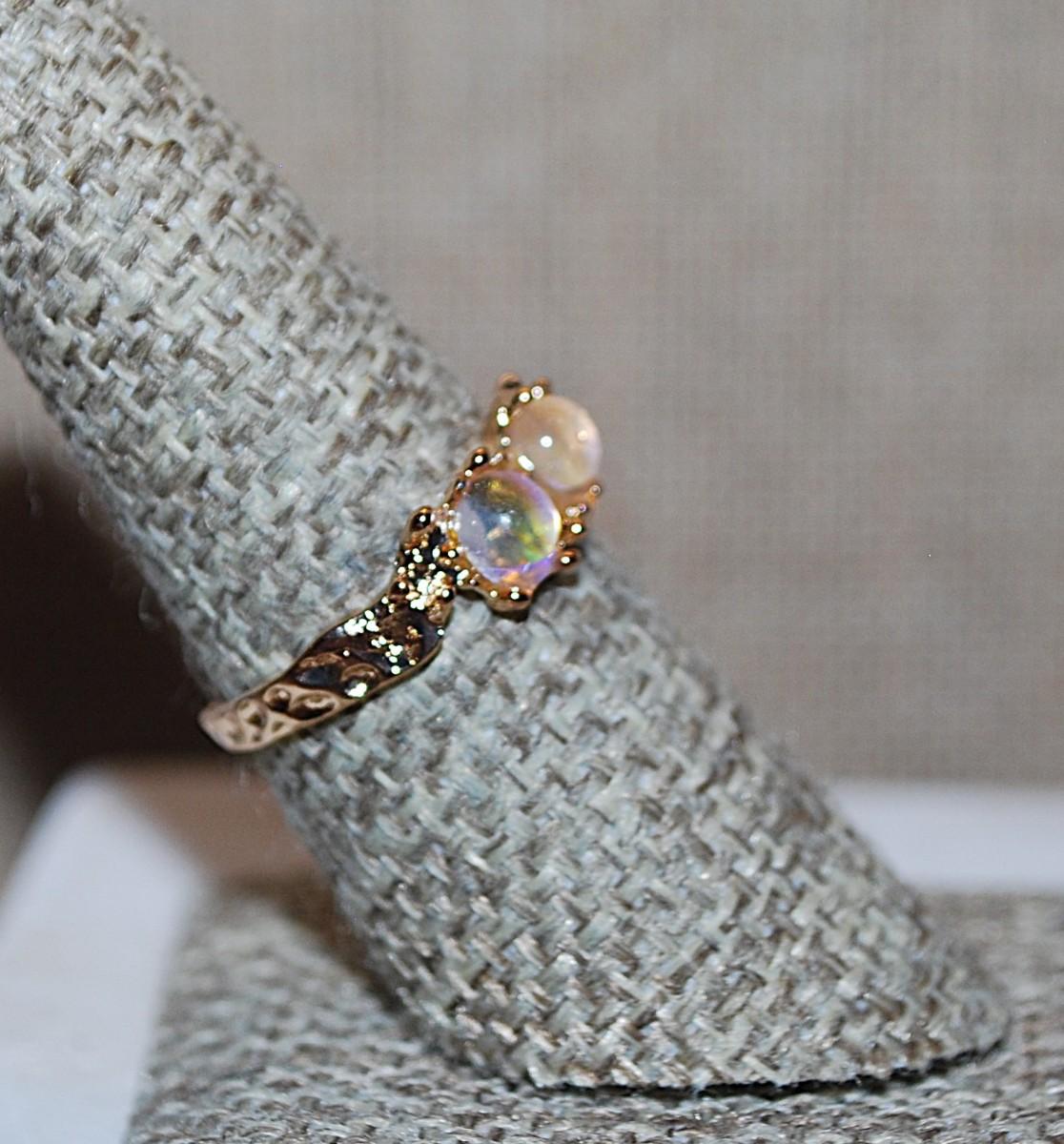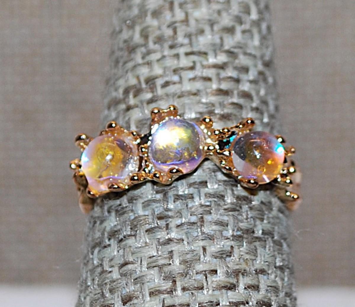 Size 7½ Triple Iridescent Stones RING with Multi-Pronged Gold Tone Setting & OPEN_ENDED Band (2.1g)