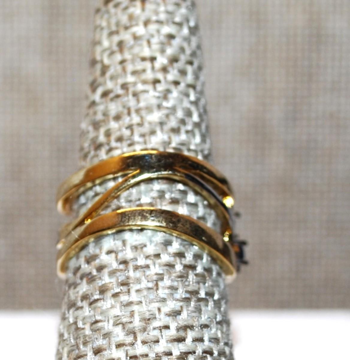 Size 7 Two Tone Hollow Band Ring with "Silver Row" of Blue & Clear Stones (4.8g)