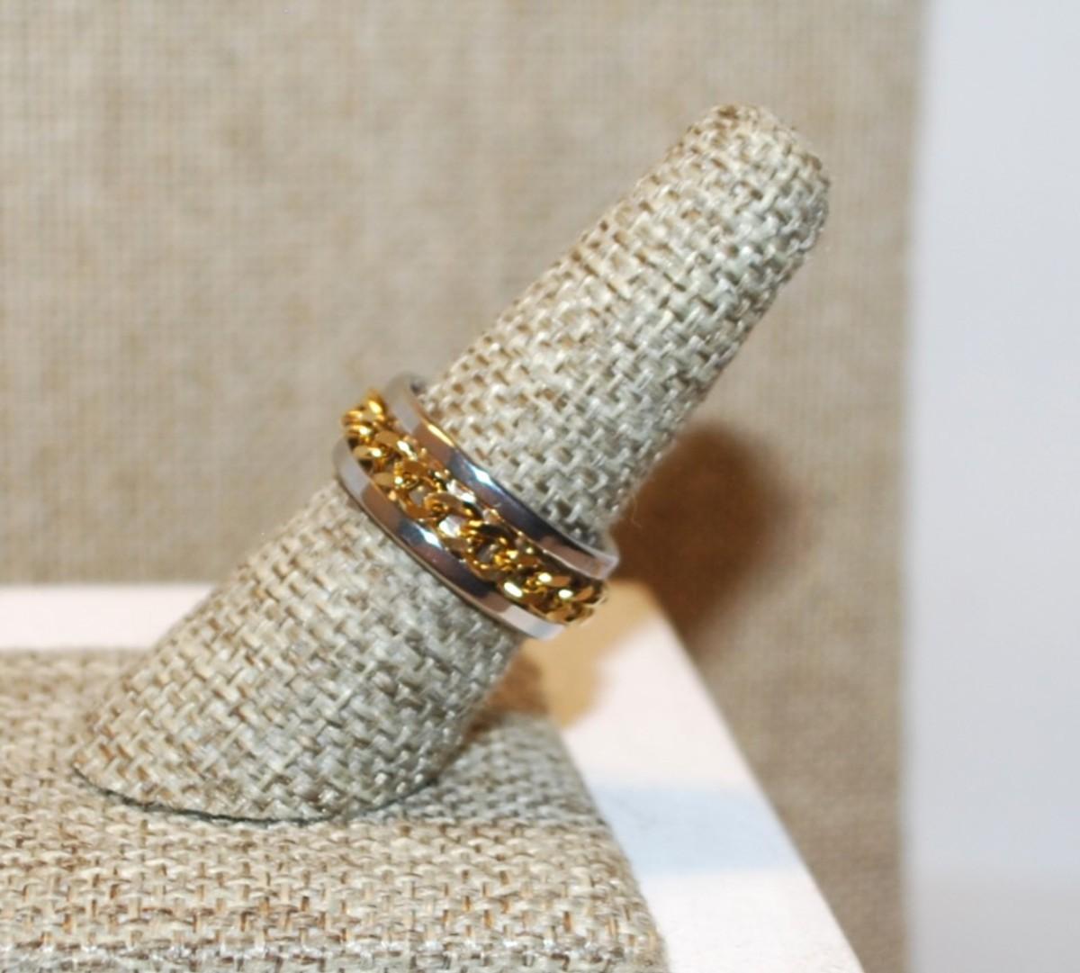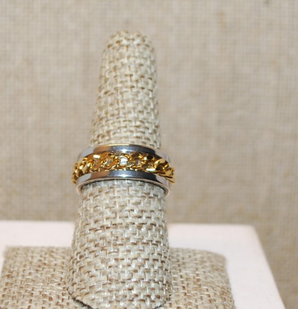 Size 7¼ Two Tone Infinity Style Ring with a Chain Link Middle on a Silver Tone Band (5.6g)