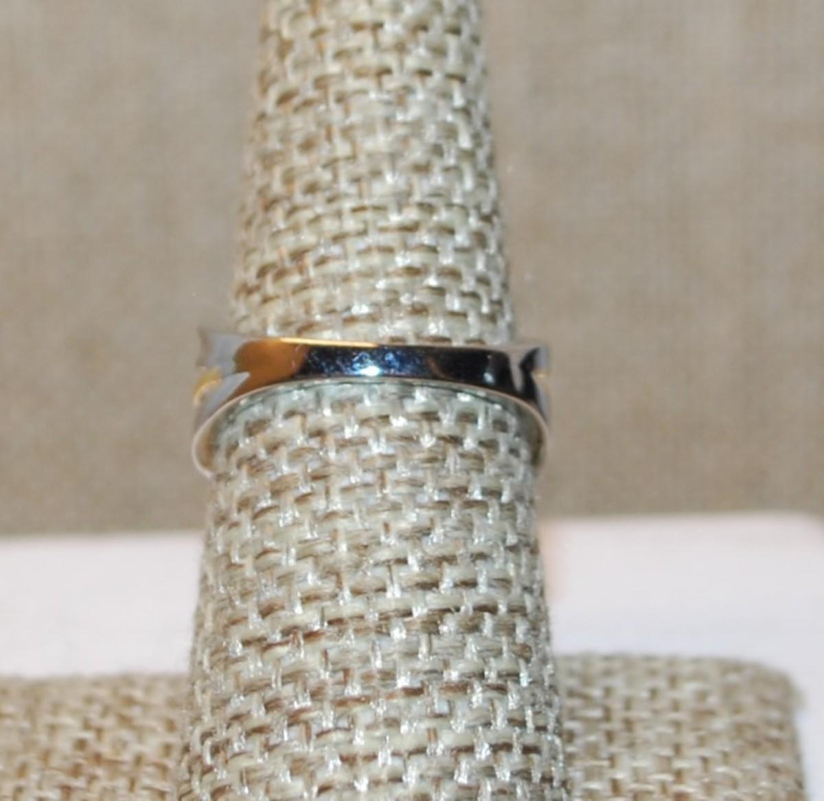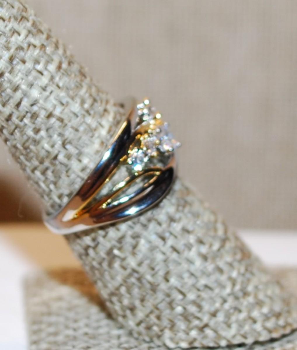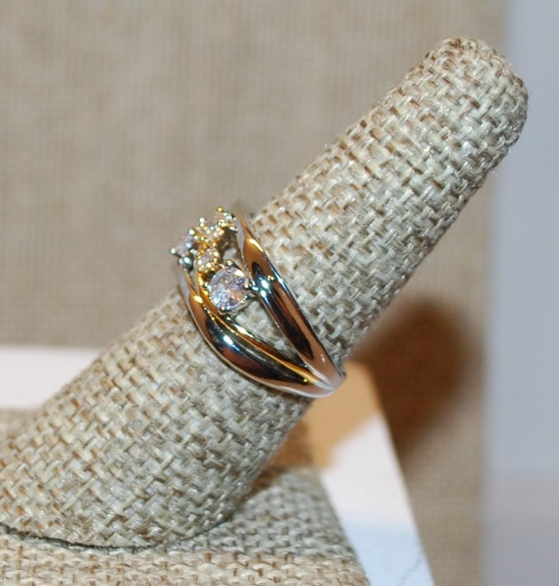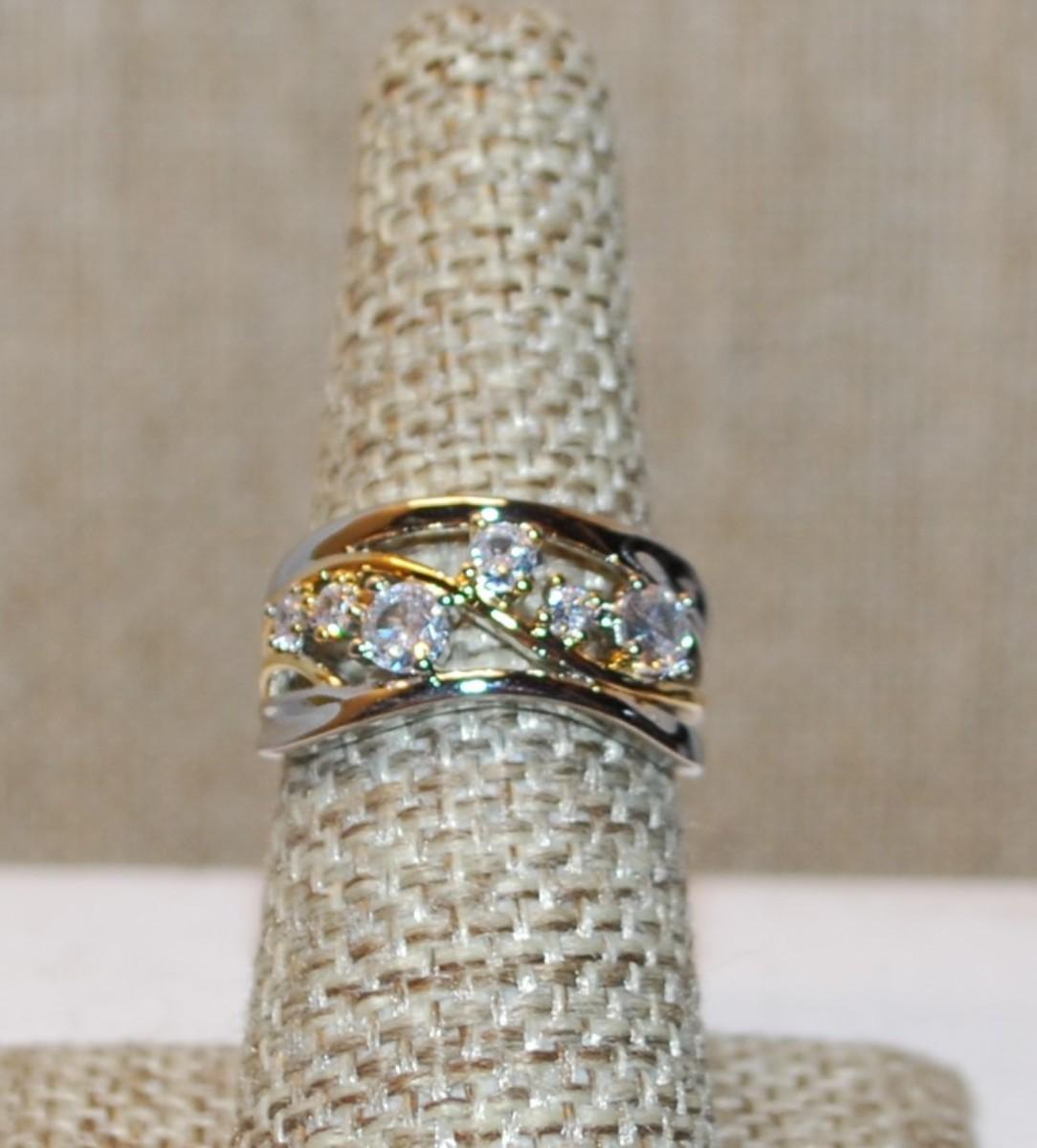 Size 7¼ Two Tone Marked .925 Hollow Band Ring with "Gold Row" of Clear Stones (4.1g)
