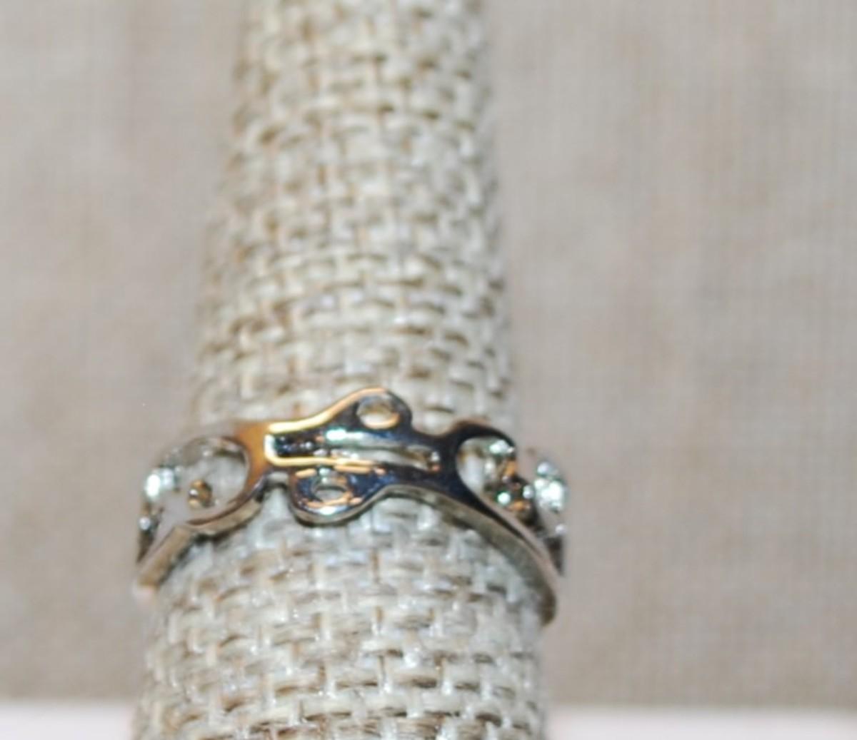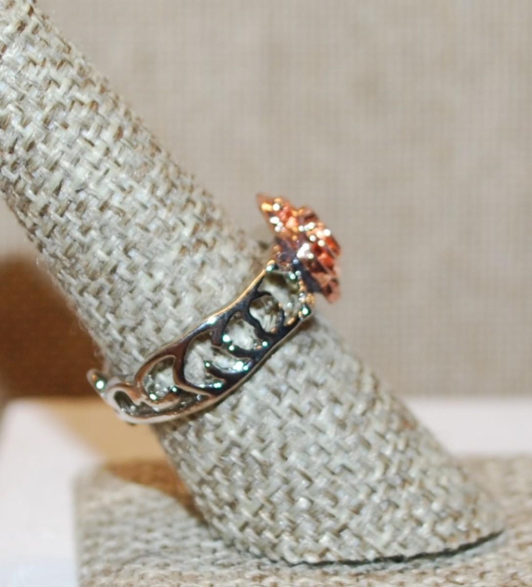 Size 7¾ Two Tone Rose Gold "Rose" Design Ring on a Hollowed Silver Tone Band (4.6g)