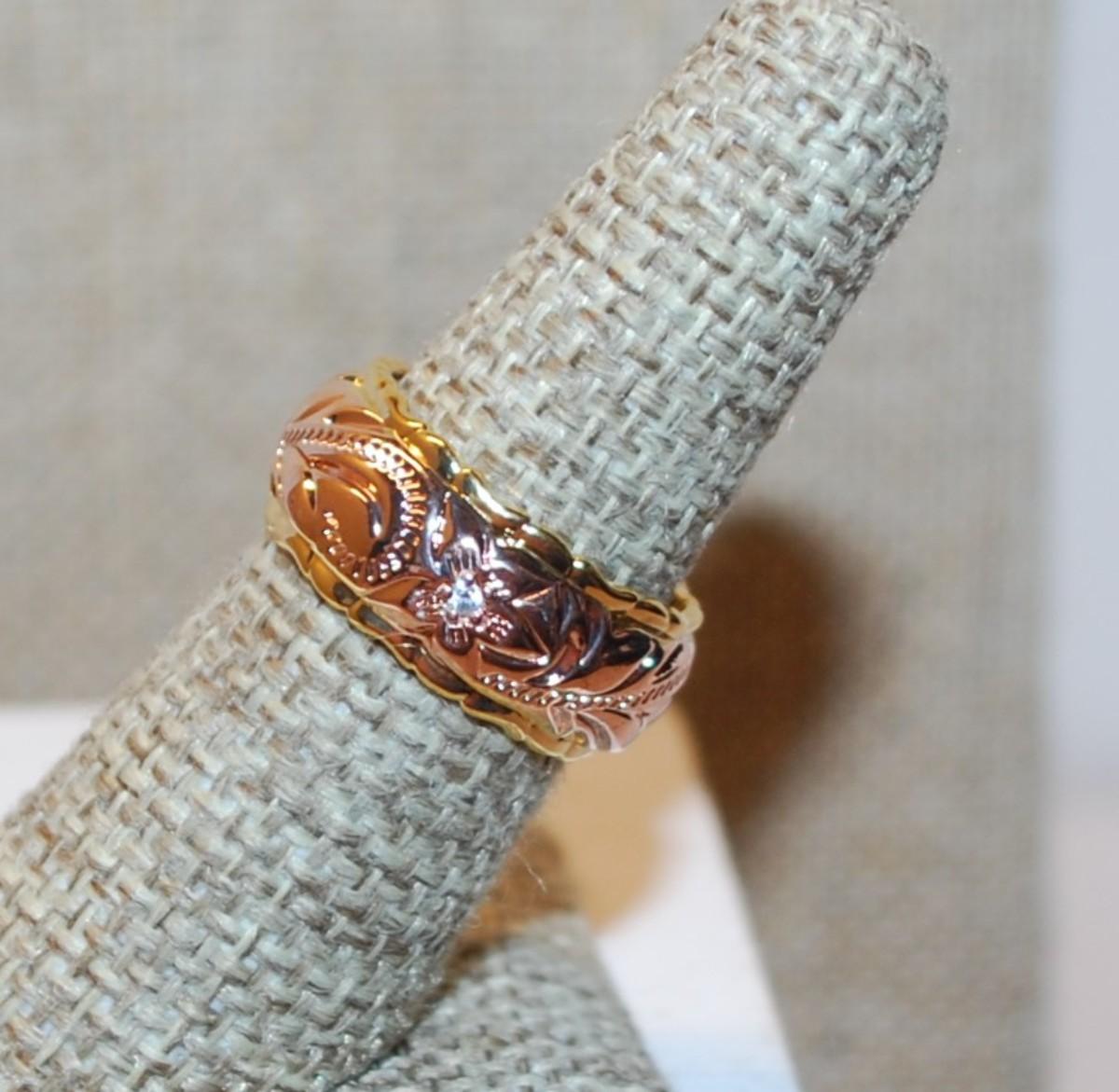 Size 7 Two-Toned ROSE GOLD & GOLD Graphic Designed Ring on a No Stones Gold Colored Band (8.0g)