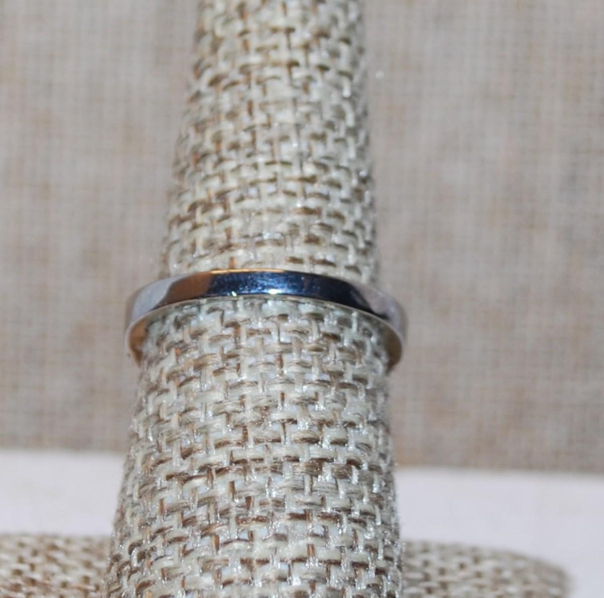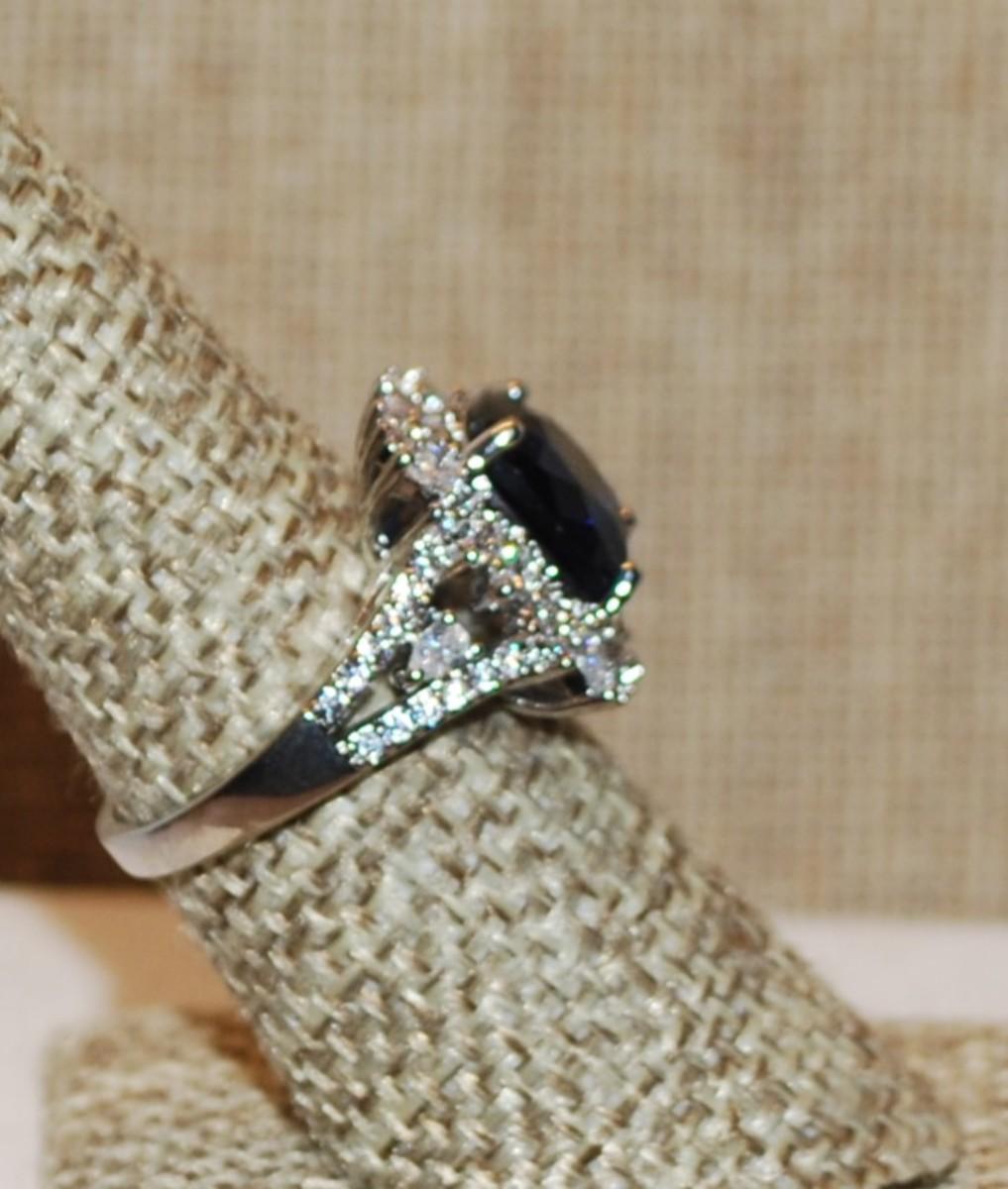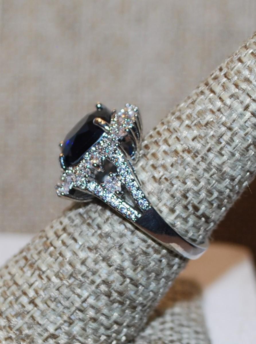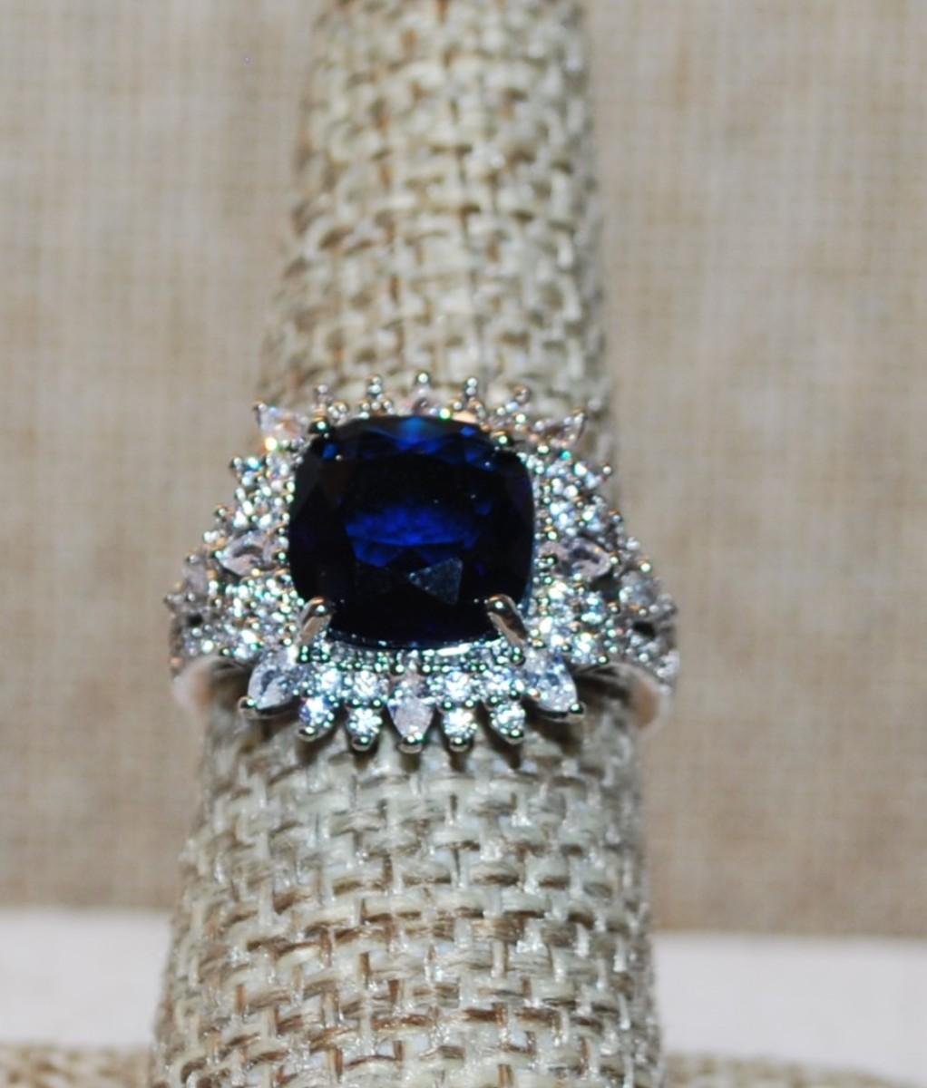 Size 7¼ Very Deep Blue Square Cut Stone Ring in a "Crown" Style Setting with Full Surround on a Silver Tone Band (5.3g)