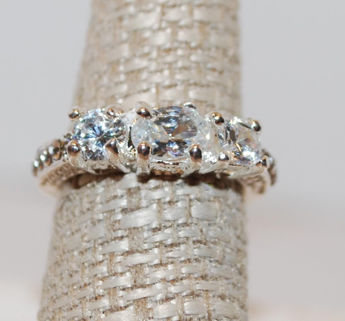 Size 7 "Wedding Diamond Style" Ring on a Silver Tone Band (4.2g)