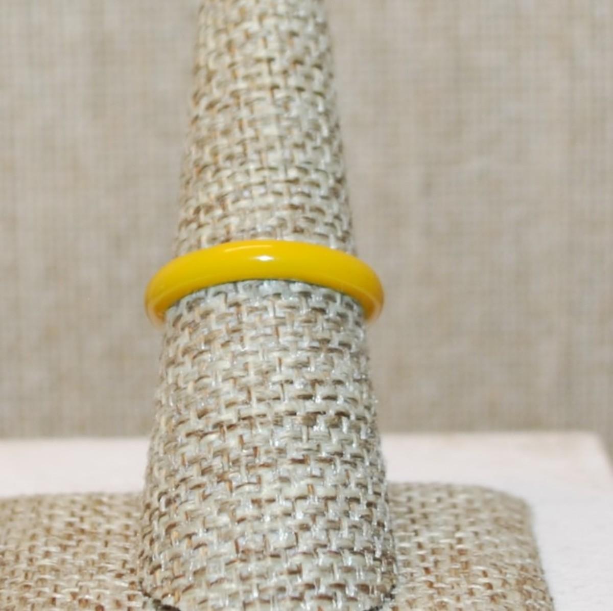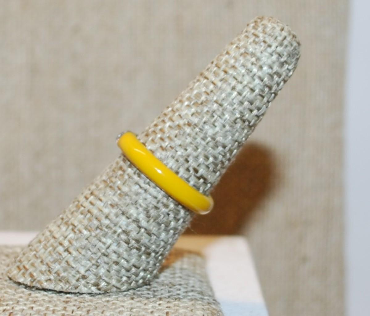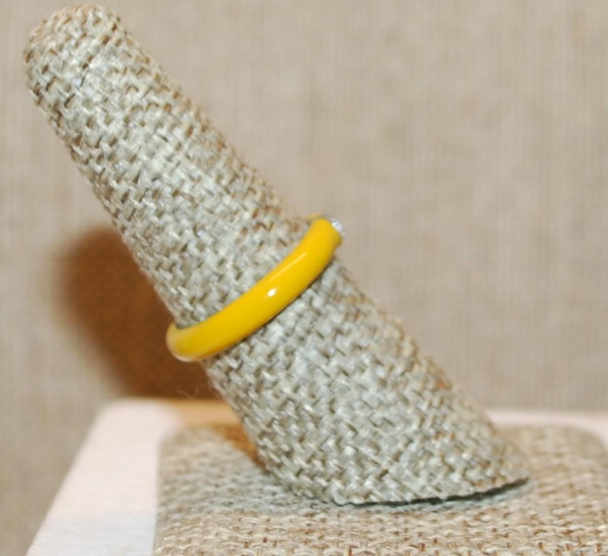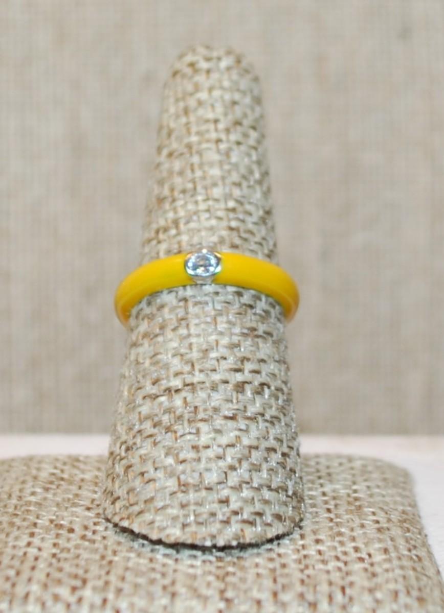 Size 7 YELLOW Enamel Style Ring with a Single Clear Stone (2.3g)