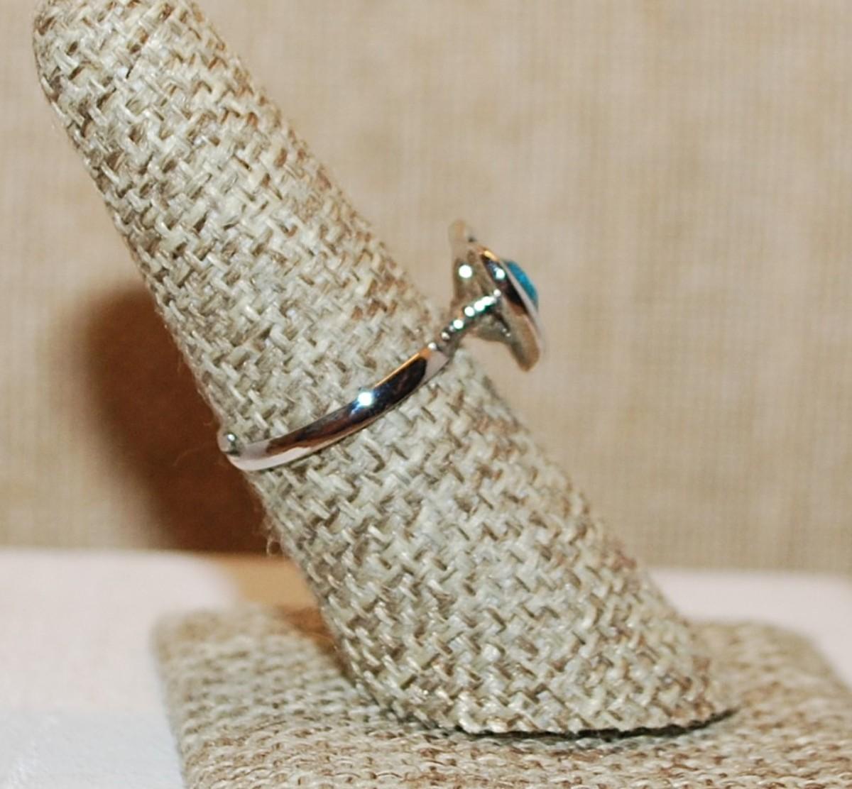 Size 7--7½ ADJUSTIBLE Split Silver Tone Band Ring with HEART & Blue Round Main Stone (1.9g)