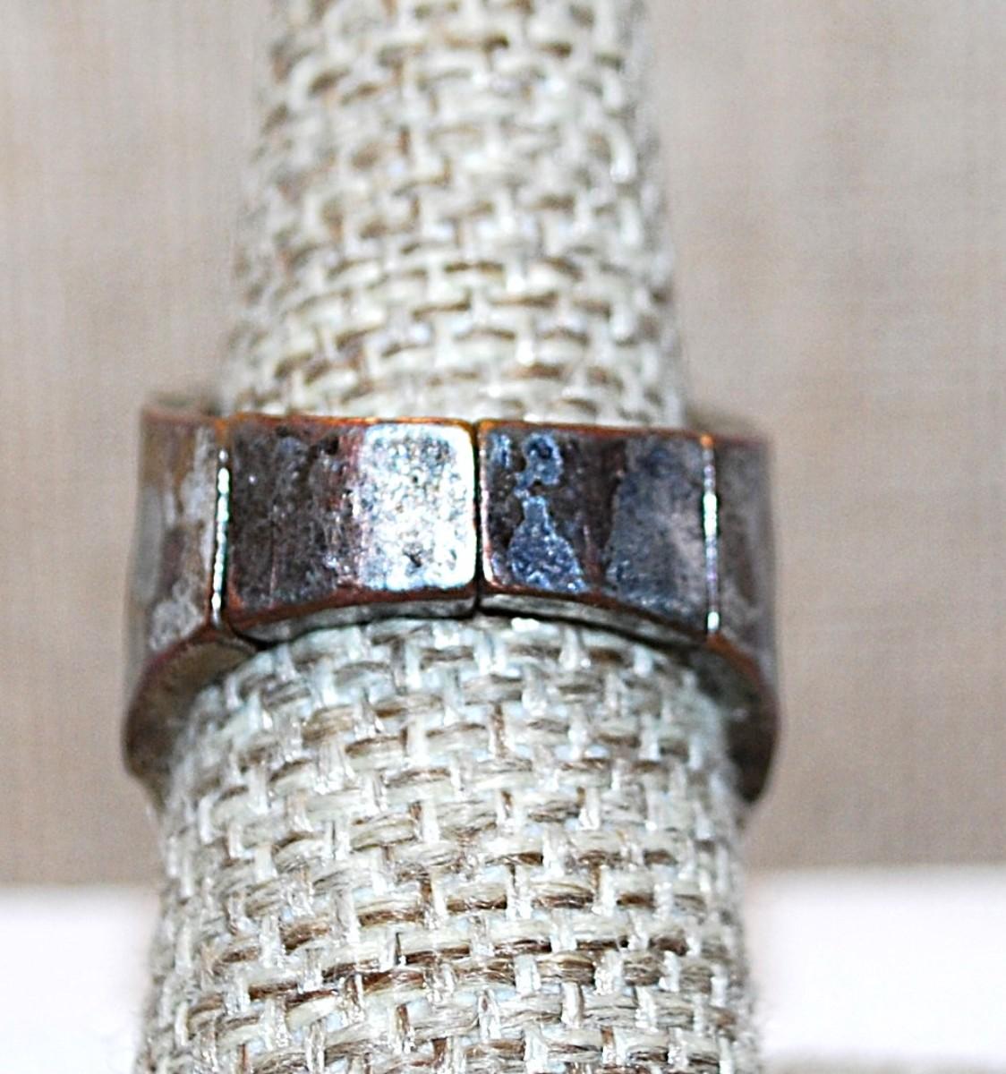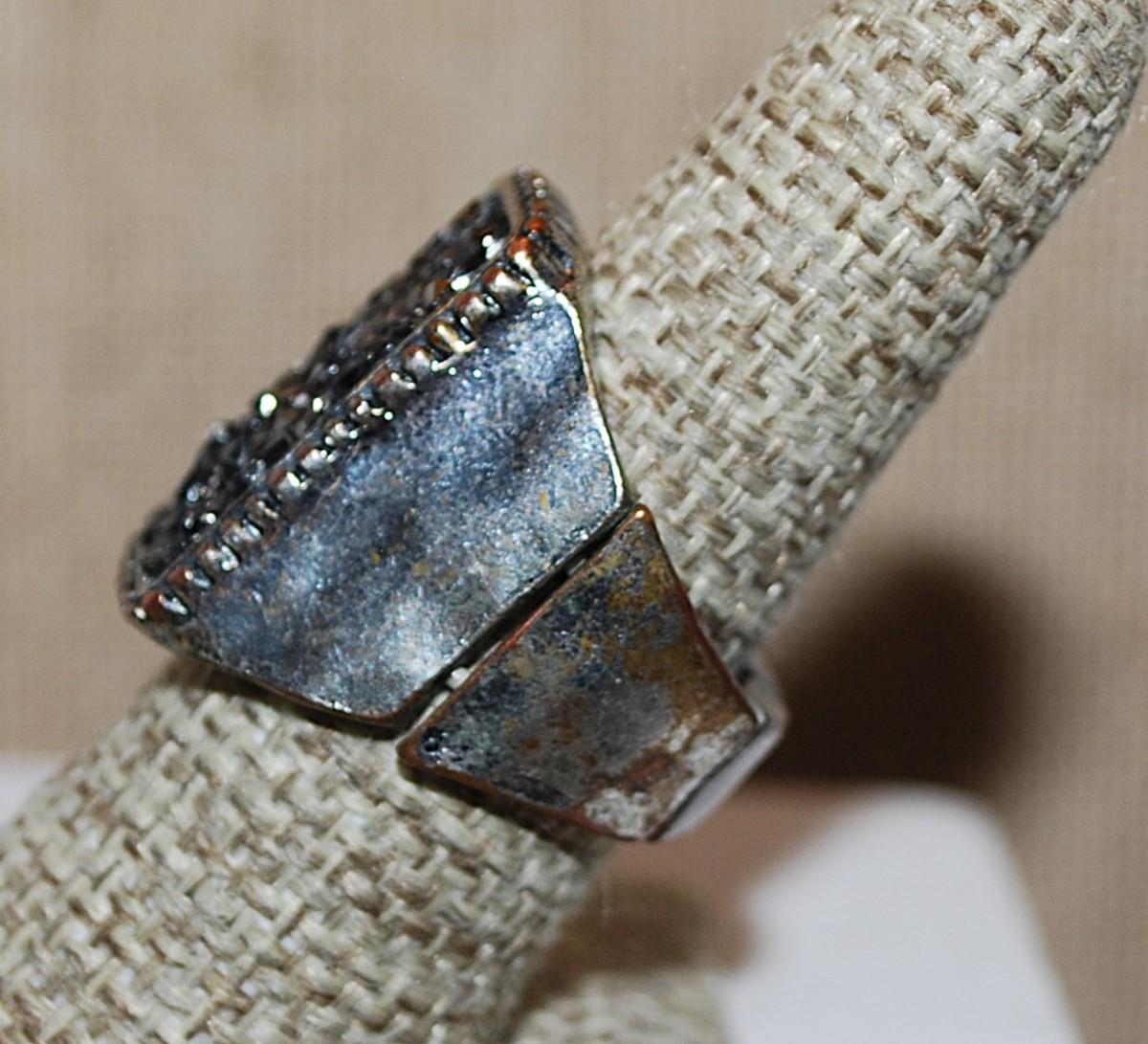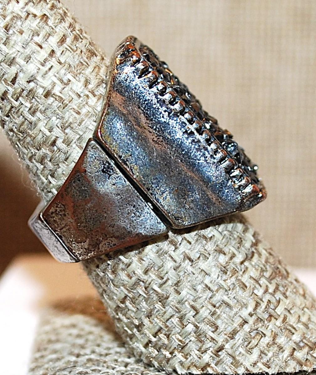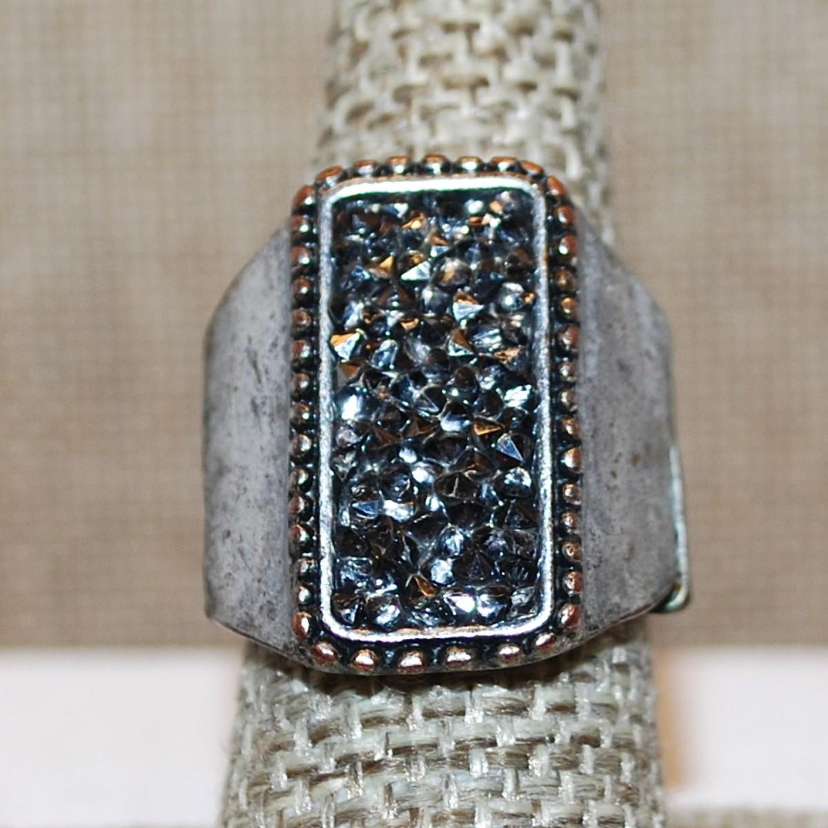 Size 7-9 VINTAGE EXPANDIBLE Ring with Charcoal Colored Chips on a Silver Tone Band (9.6g)