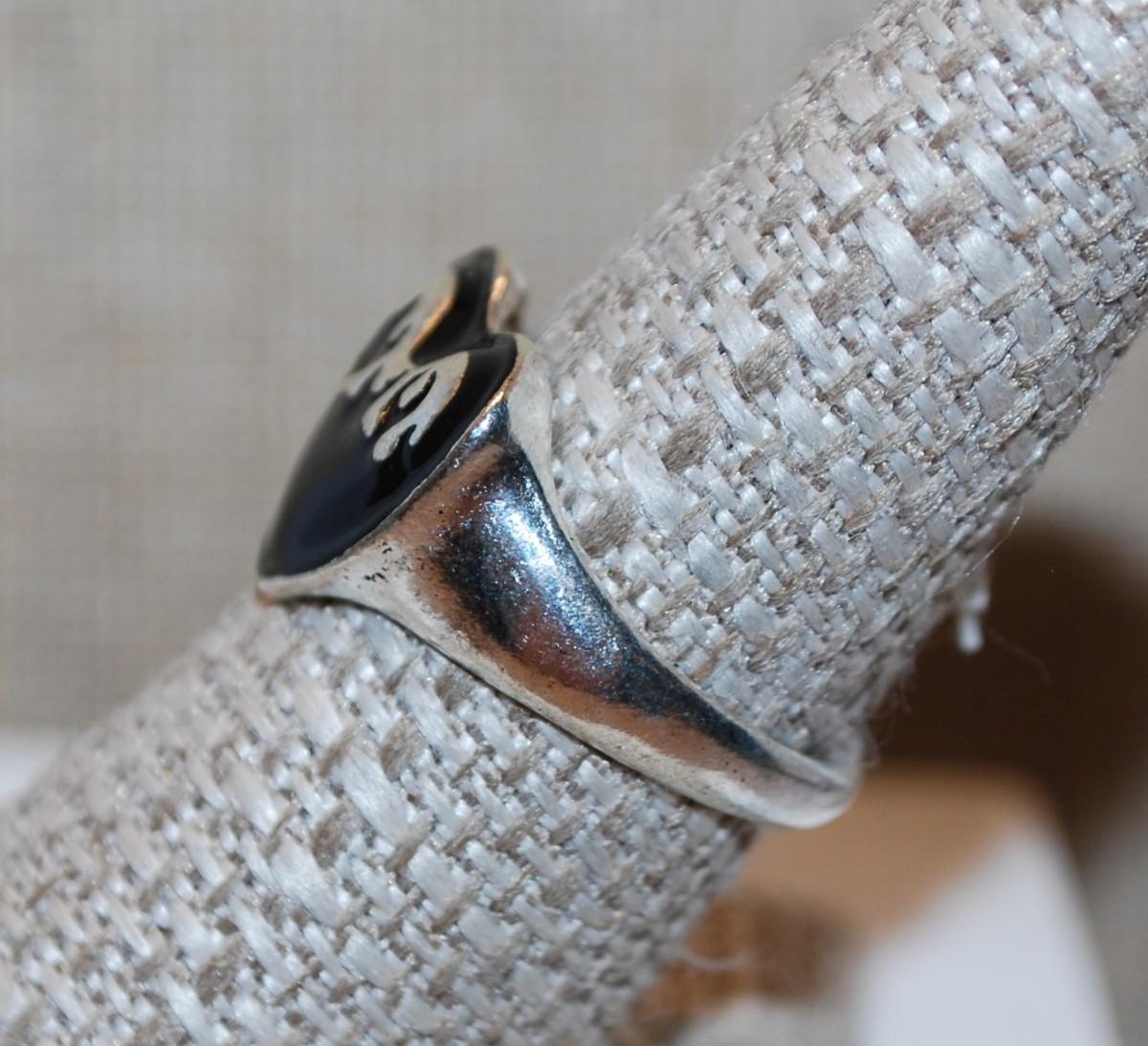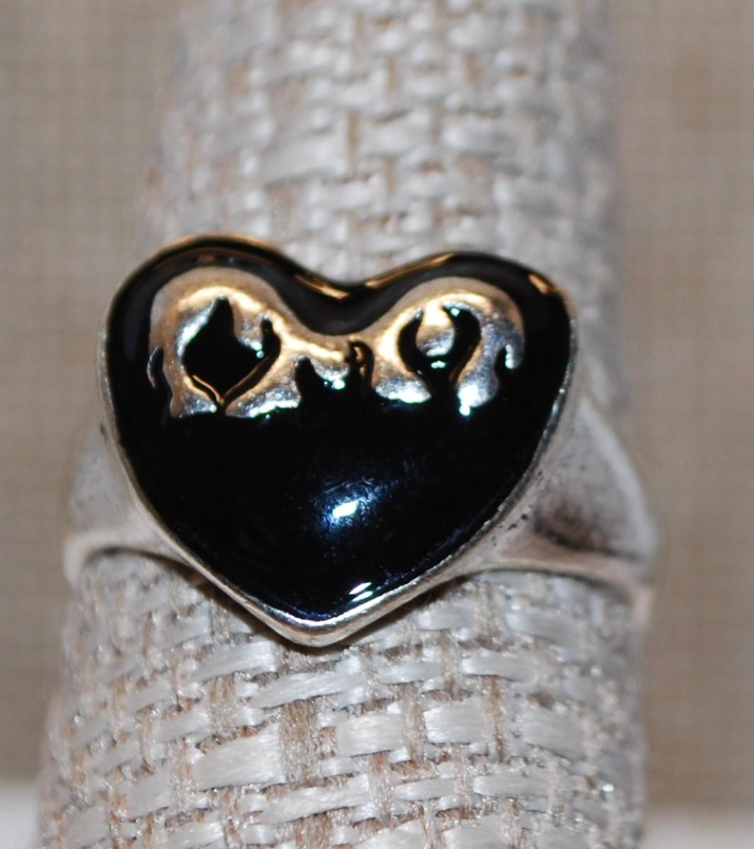 Size 8½ All Silver Tone "Black Heart" Ring (4.8g)