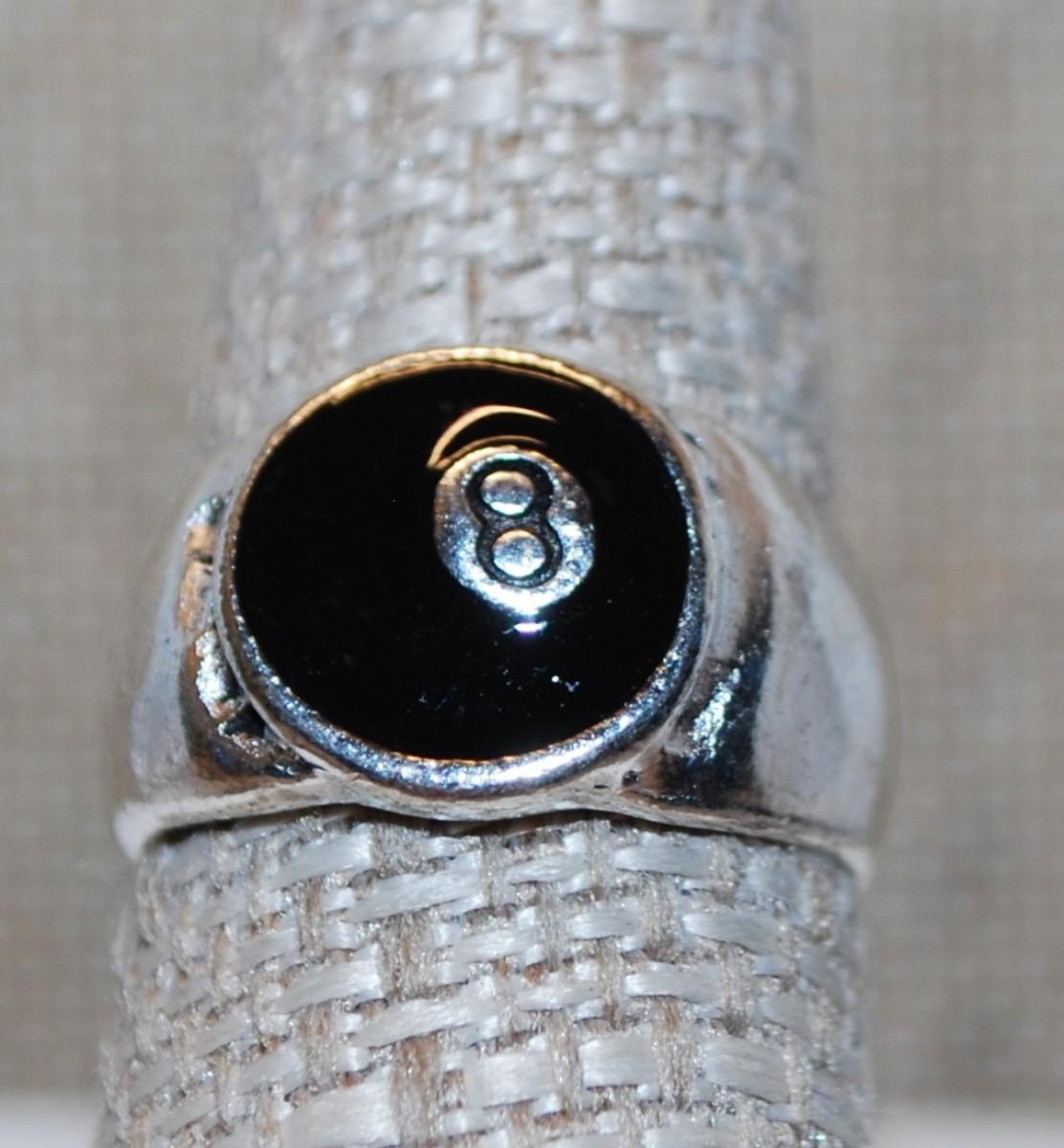 Size 8 All Silver Tone "*8 Blackball" Ring (5.7g)