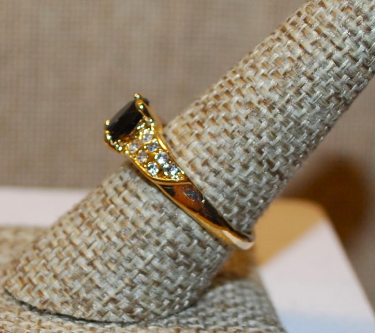 Size 8½ BLACK Oval Cut Stone Ring with Side Accents on a Gold Tone Band (2.8g)