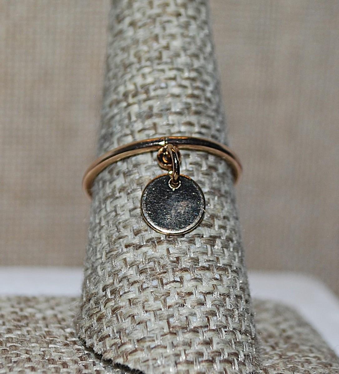 Size 8 Dangle Round TAG RING on a Gold Tone No-Stones Band (1.1g)