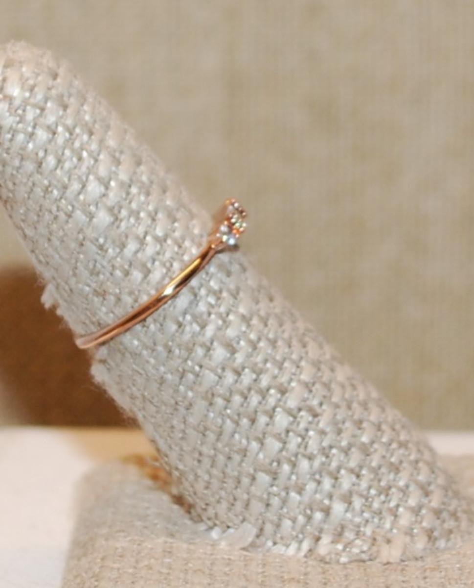 Size 8 Delicate CLEAR Rectangle Stone GOLD ROSE Ring with 2 Round Clear Stone Sides on a Rose Gold Band (1.2g)