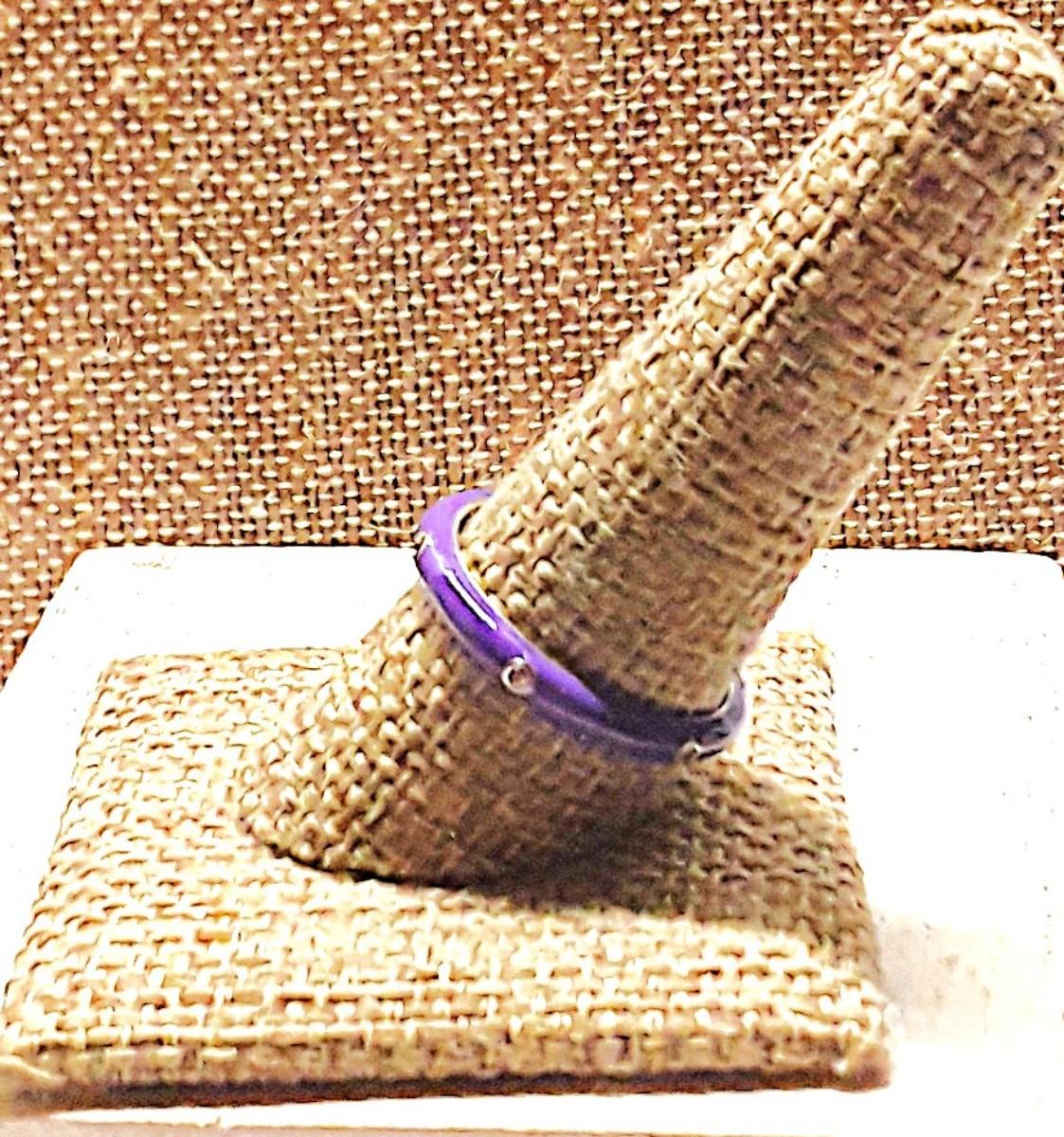 Size 8 Delicate LAVENDER Enamel Ring with 6 Accent Clear Stones on a Silver Tone Band (2.2g) - STACK ALL COLORS for a REAL IMPACT