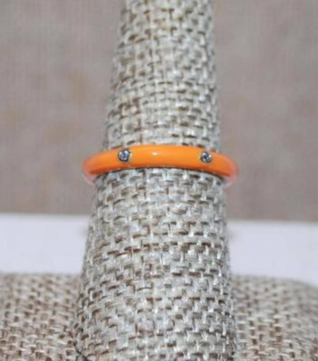 Size 8 Delicate ORANGE Enamel Ring with 6 Rhinestones Around the Band (2.4g) - STACK ALL COLORS for a REAL IMPACT