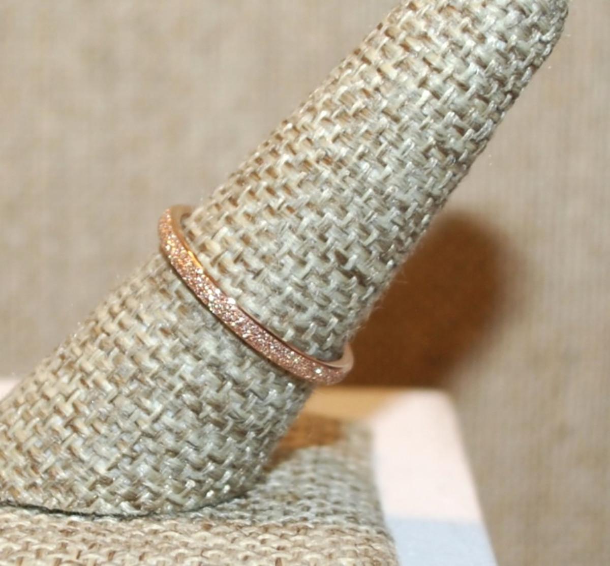 Size 8¼ Delicate Pink Ground Stone Infinity Style Ring on a Rose Gold Band (1.3g)
