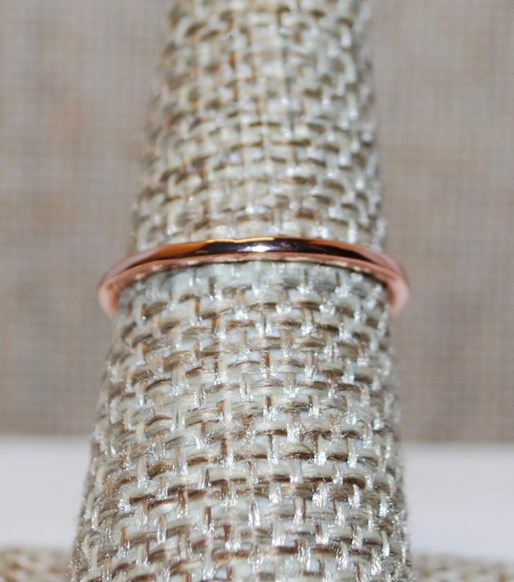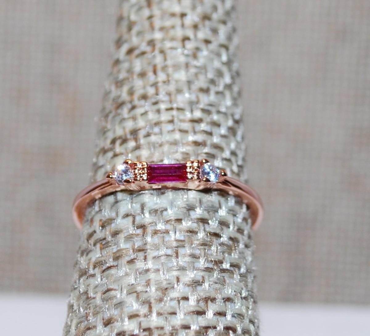 Size 8 Delicate RED Rectangle Stone Ring with Small Side Accents on a ROSE GOLD Band (1.2g)