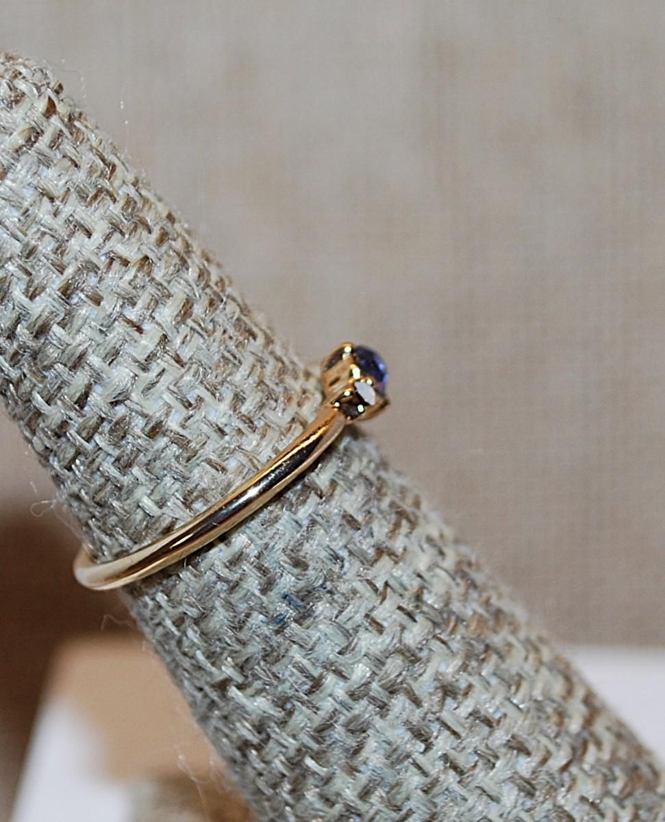 Size 8½ Delicate Round BLUE Stone Ring & 2 Opaque White Side Stones on a Gold Tone Band (1.1g)