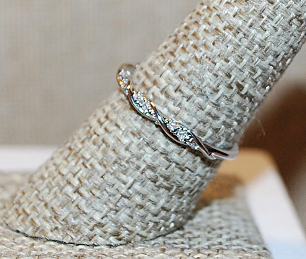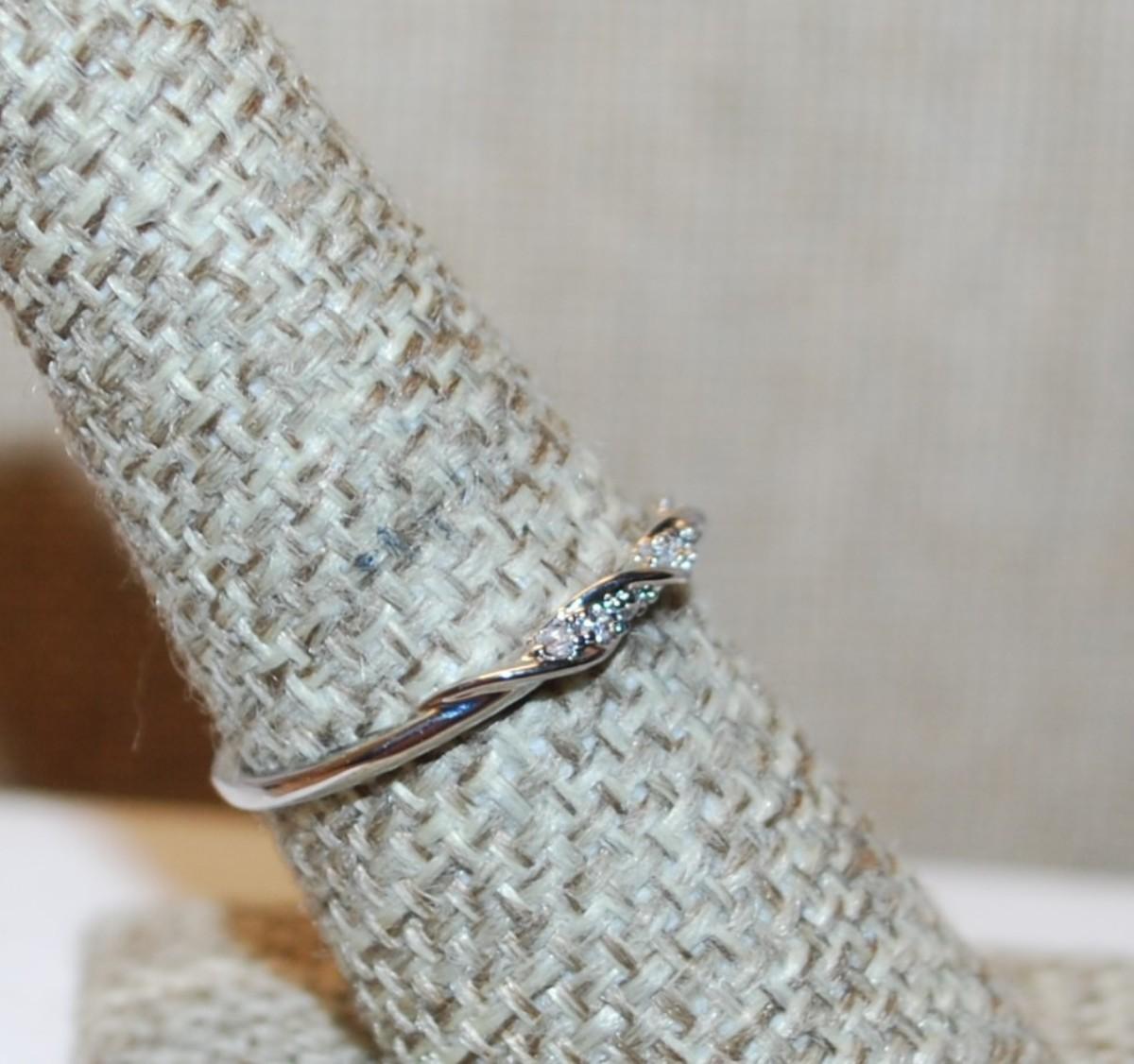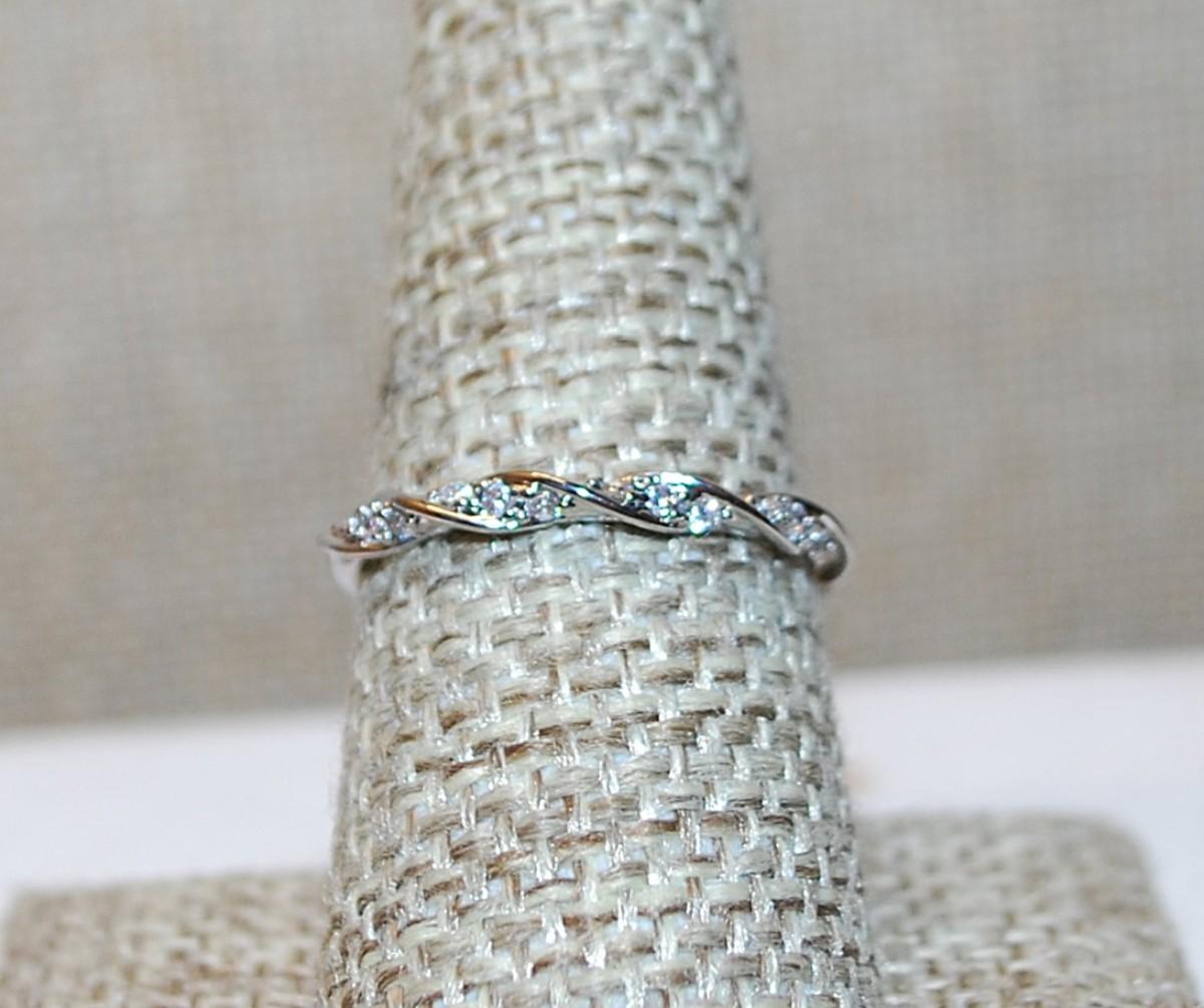 Size 8 Delicate Swirls Intertwined Ring with Clear Stones and Silver Tone Band (1.3g)